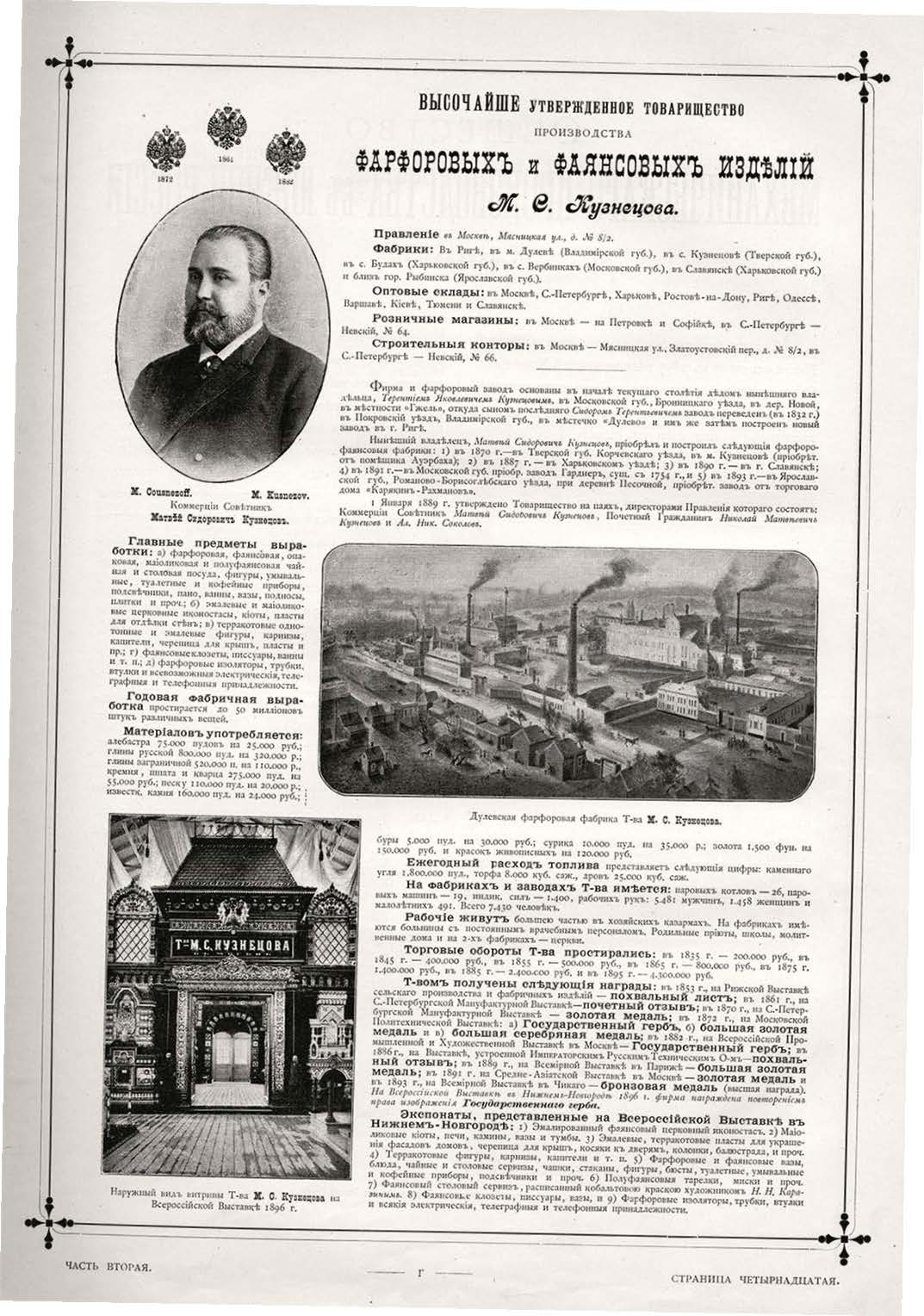 Символично, что дед «фарфоро-фаянсового» короля России, старовер Яков Кузнецов, родился в знаменитой Гжельской волости. Поэтому строительство его внуком целой фарфоровой империи с центром в Дулёво оказалось в какой-то степени закономерным. С 1902 года предприятие Матвея Кузнецова именовалось «поставщиком двора Его Императорского Величества», что считалось высшим достижением для любого производителя. На заводах промышленника трудились более 5000 рабочих, а на его предприятиях в числе прочего производили утварь для старообрядческих церквей. При приёме на работу предприниматель отдавал предпочтение староверам. Продукция заводов Кузнецова получала медали на международных выставках, в том числе на Парижской.