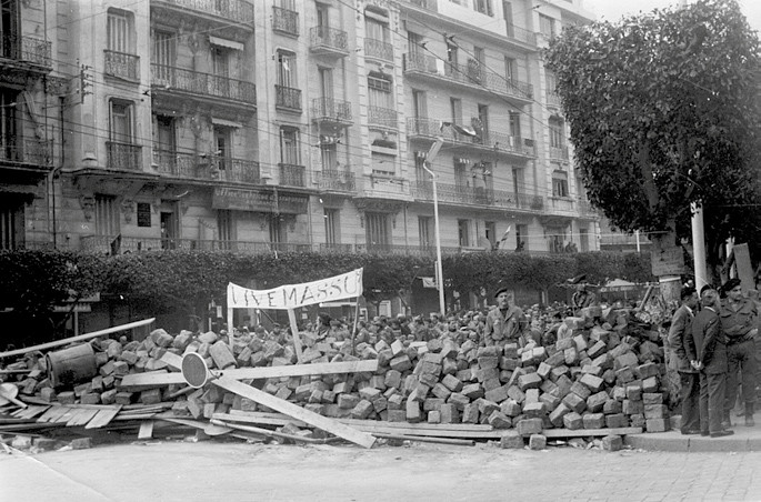 В конце января 1960 года в городе Алжире начались беспорядки, получившие название «Неделя баррикад». Незадолго до этого из Алжира отозвали генерала Массю — знаковую фигуру эпохи, человека, который победил городских партизан и привёл к власти де Голля. 18 января Массю в интервью, вспоминая переворот 1958 года, приведший де Голля к власти, сказал: «Возможно, армия совершила ошибку».