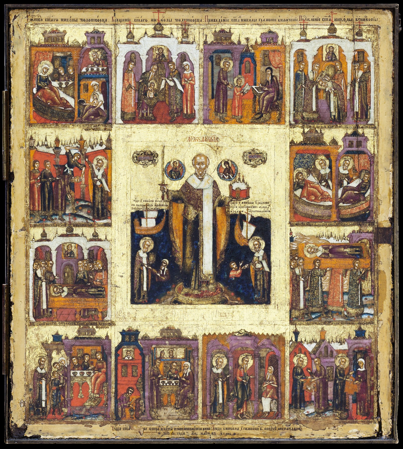 Иконы святого Николая, или Николы, были очень распространены в России. А житийные иконы Николы, где в картинках рассказывается обо всех чудесах и подвигах святителя, были самыми распространёнными среди всех житийных икон.