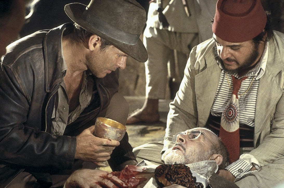 Вообще, прекрасный фильм Стивена Спилберга «Индиана Джонс и последний крестовый поход» предоставляет нам немало разумных сведений о Граале и его поисках. Принимая версию основателя легенды, французского трувера XII века Кретьена де Труа, что это та самая чаша, орошённая кровью Христа и сохранённая Иосифом Аримафейским, Спилберг назначает тому, кто ищет животворный сосуд, ряд испытаний, не совсем таких, как в средневековых романах, но вполне достойных «Сказания о Граале». Самое главное, пройти их может только человек чистый душой, смиренный и полный веры, а в фильме ещё и знающий, как пишется «Иегова» — имя Бога.