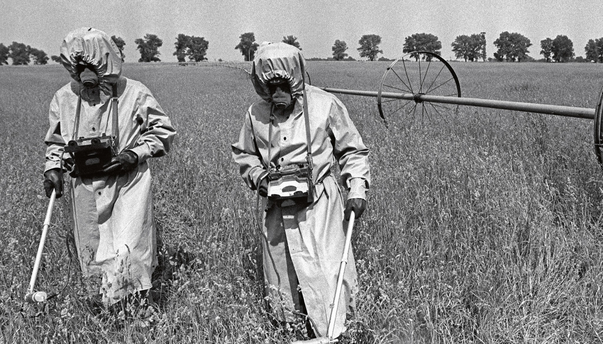 Зона заражения. Для выявления территорий, которые подверглись радиоактивному заражению, были привлечены десятки тысяч людей. Они должны были с дозиметрами в руках обходить участок за участком, фиксируя уровень излучения. Специалисты измеряют уровень радиации в одном из районов около ЧАЭС. Фото 1986 года