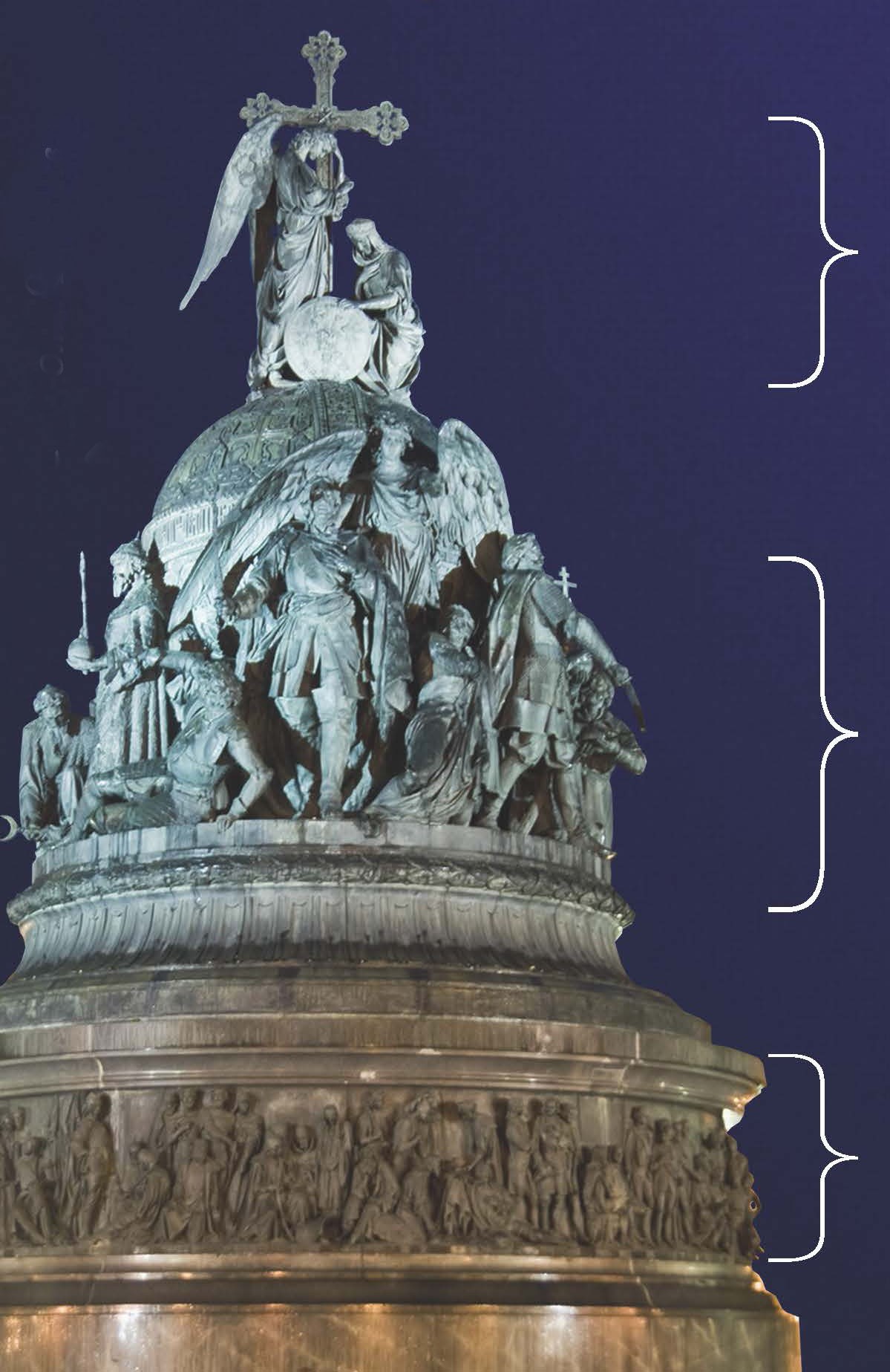 В непрерывной опоясывающей ленте собраны более ста героев русской истории. Условно они разделены на четыре группы.