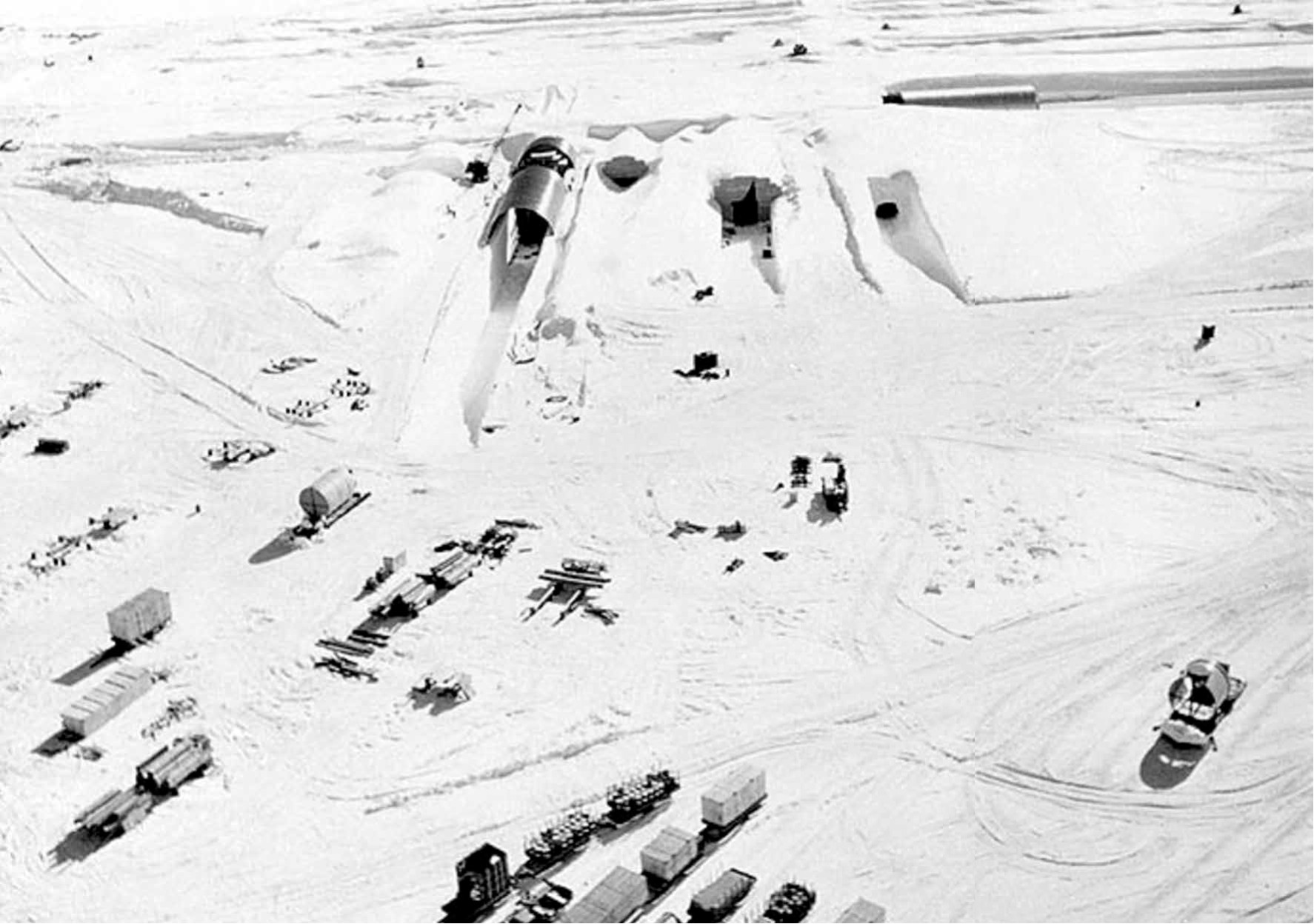 Речь идёт о военной научно-исследовательской базе США, действовавшей в 1959–1967 годах. Из документов о ней, которые были рассекречены только в 1996 году, стало известно, что Camp Century стал пилотным поселением проекта «Ледяной червь» (Project Iceworm), конечной целью которого было создание сети стартовых площадок для ядерных ракет, способных вы держать первый удар. Однако ракеты так и не были поставлены на вооружение, поскольку правительство Дании, в состав которой входит Гренландия, не дало своего согласия.