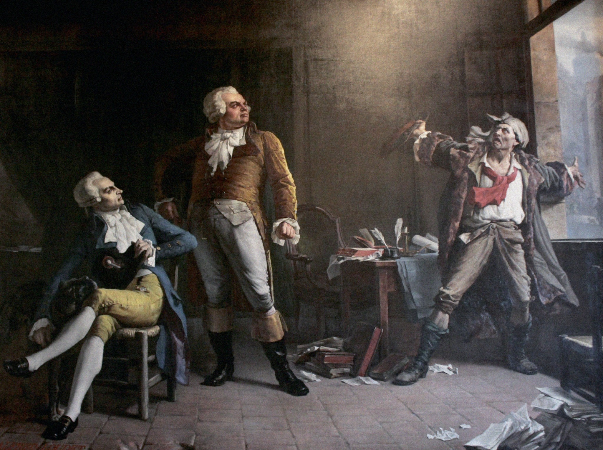 Идеалисты и романтики. После того как Европу в середине XIX века захлестнула волна революций и пришла мода на идеи социализма, многие стали воспринимать лидеров Великой французской революции как настоящих романтиков-идеалистов. Художники стали их рисовать со всеми подобающими атрибутами: горящие глаза, высоко поднятая голова, динамичная поза. Робеспьер, Дантон и Марат. Альфред Луде, 1882 год