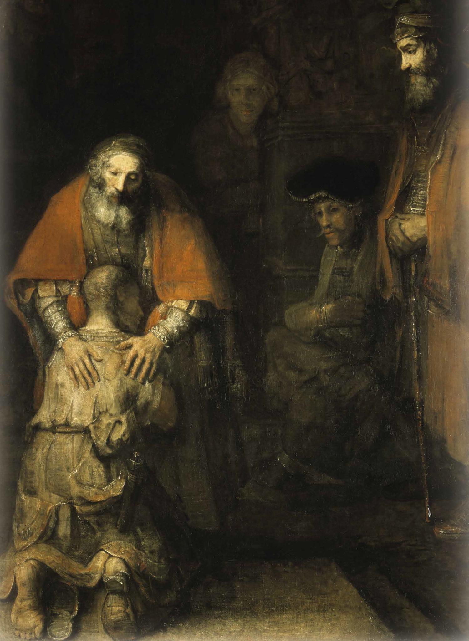 Кто из дилетантов не знает этой картины Рембрандта Ван Рейна, написанной приблизительно в 1663–1666 годах. Полотно это хранится в Санкт-Петербурге в Эрмитаже. У этой картины (я как-то об этом писал) теперь фотографируются брачующиеся. Они, возможно, смотрят в своё будущее и представляют сцену возвращения блудного мужа (жены), думают, наверное, простить ли его (её), как этот сделал Отец своего блудного сына.