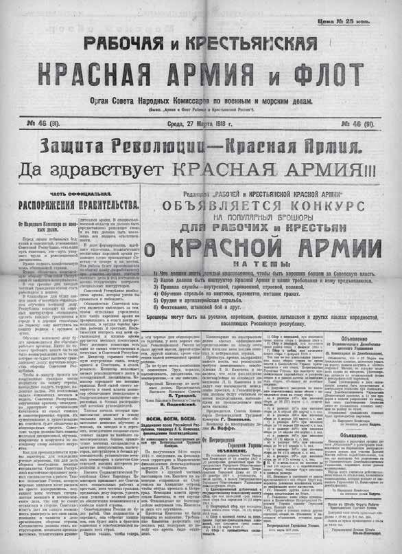 28 января 1918 года был издан декрет о создании Красной армии, 30 января — «О социалистическом Рабоче-Крестьянском Красном Флоте». Председатель Совнаркома Владимир Ленин был вынужден констатировать: «Вопрос о строении Красной Армии был совершенно новый, он совершенно не ставился даже теоретически». Вскоре новой власти стало очевидно, что решить задачу можно только одним путём — с помощью офицеров дореволюционной армии.