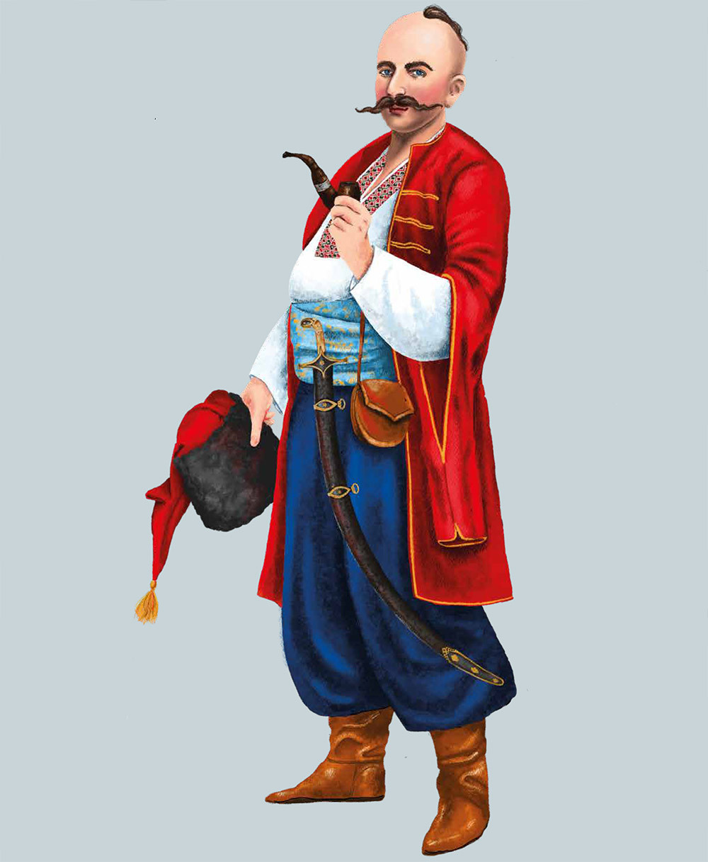 В XVI столетии запорожские казаки образовали военный союз, известный под названием Запорожская Сечь. Расположенный за днепровскими порогами укреплённый лагерь (сечь) казаков служил местом пребывания выборного войскового командования, хранения оружия, припасов, трофеев. Запорожцы охотно нанимались служить татарам, крымским генуэзцам, литовцам, полякам, русским, туркам и даже персам. При других обстоятельствах те же соседи становились первыми врагами. Так что и костюм запорожцев, меняясь со временем, вбирал в себя элементы разных одежд, что придавало ему своеобычность и красочность, за которые его так ценили художники.