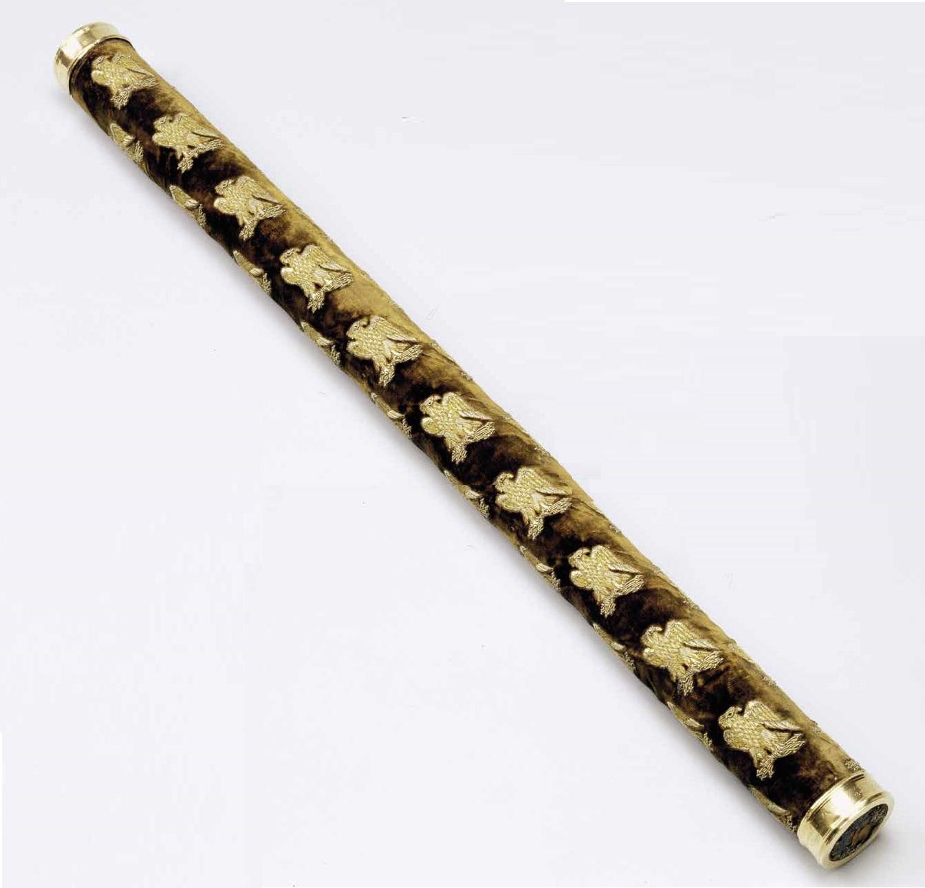 Это цилиндр длиной в 50 см, диаметром 4 см, обшитый синим бархатом и усеянный золотыми императорскими орлами. На концах жезла — по золотому кольцу, на одном из которых выгравирована надпись, свидетельствующая о том, что принадлежит он именно Луи Никола Даву, и дата присвоения звания, еще по республиканскому календарю: 29 Флореаля XII года, что соответствует 19 мая 1804 года. Когда Первый консул, генерал Бонапарт, удивительным образом превращался в императора Наполеона, он выстраивал монархическую иерархию, гражданскую и военную, не столько