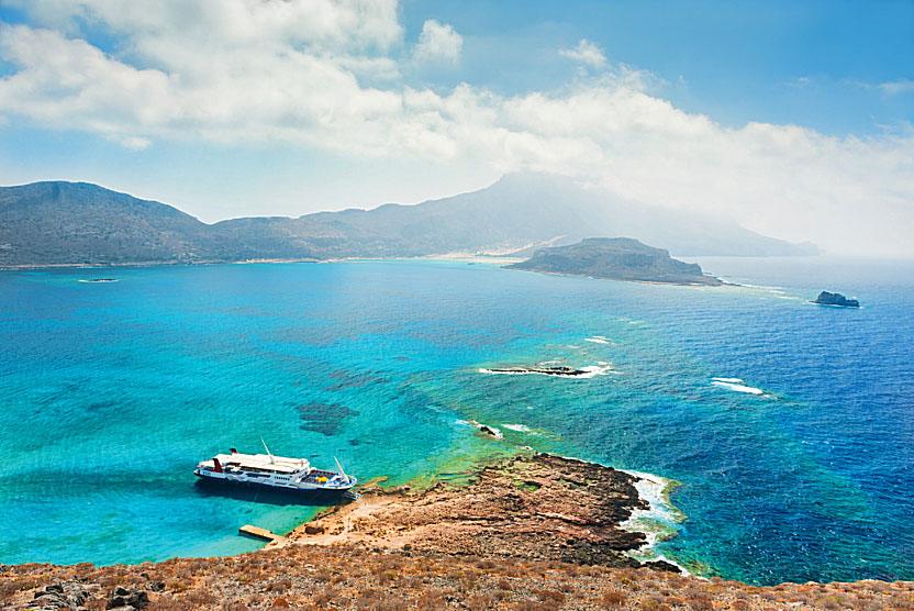 Загляните в бухту Балос: тут сливаются три моря — Средиземное, Критское и Ионическое. Вода здесь переливается четырнадцатью оттенками синего цвета. Огромная отмель белого кварцевого песка покрытого тонким слоем прозрачной воды, напоминает иллюстрацию к детским сказкам о прекрасных принцессах. С Крита на пароме можно доплыть до Санторини. От пустынного причала до оживленных улочек Фиры всего 260 метров. Вроде бы немного, но идти придется резко вверх — по лестнице (687 ступенек) на краю отвесной скалы. Впрочем, есть и другие способы попасть в город: можно въехать туда верхом на ослике или прокатиться на фуникулере.