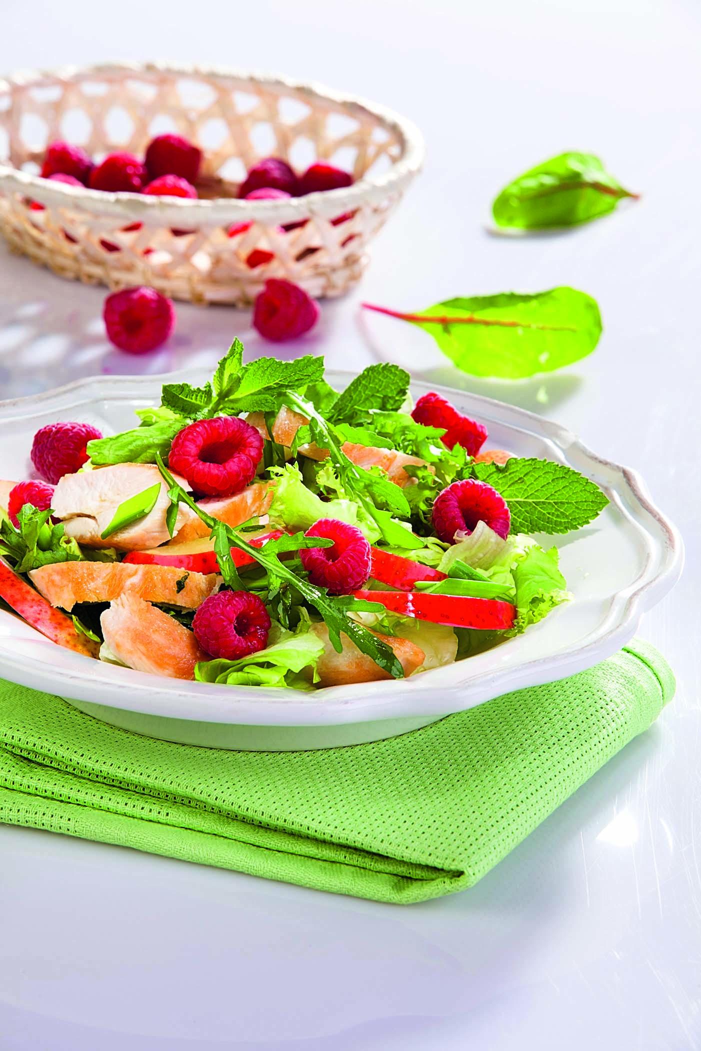 Куриное филе вымыть, хорошо обсушить и обжарить со всех сторон на 3 ст. л. оливкового масла до готовности. Затем дать остыть и нарезать ломтиками. Посолить и поперчить.