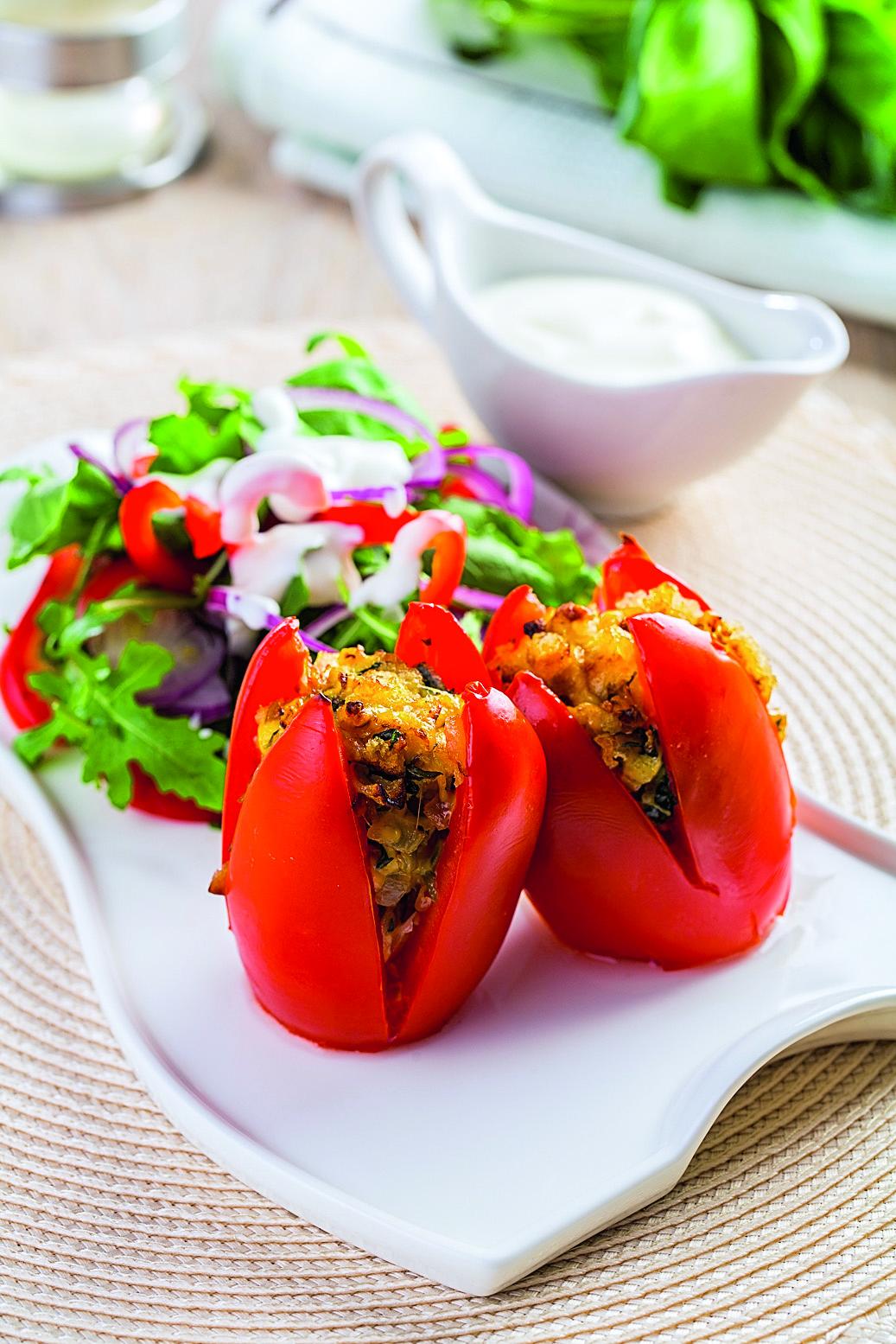 • 1 луковица • 2 ст. л. оливкового масла • 4 ломтика багета • 8 помидоров • 100 г сыра