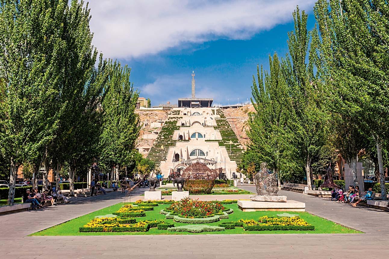 Арарат — не просто гора, к которой, по легенде, пристал ковчег Ноя после потопа. Это символ и душа Армении. В Ереване говорят: “Если утром увидел Арарат без облаков — день будет удачным”. Этим, наверное, и объясняется популярность смотровой площадки Каскада по утрам. Здесь Арарат виден во всей красе. Кстати, Каскад — это целый архитектурный комплекс с приятным парком, арт-скульптурами и даже “местами для поцелуев” на ступеньках огромной лестницы. Гулять здесь любят и сами ереванцы, особенно вечерами.