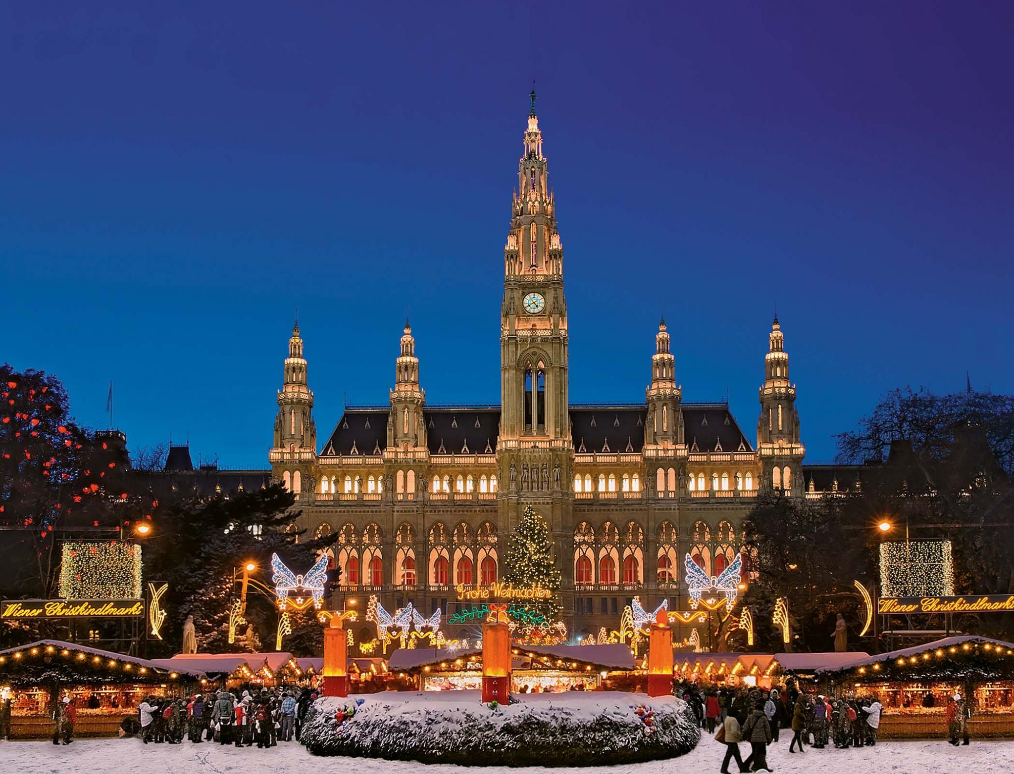 В 1296 году венские торговцы впервые получили разрешение устроить на площади у Ратуши декабрьский продуктовый рынок для горожан. Так что знаменитый Кристкиндльмаркт имеет многовековые традиции. С конца ноября здесь одна за другой вырастают нарядные деревянные избушки. Тут торгуют украшениями, авторской одеждой и аксессуарами и угощают ванильными рогаликами, звездочками с корицей и глинтвейном (в том числе и безалкогольным). Под стенами ратуши устанавливают главную елку страны (под 30 метров высотой) и заливают знаменитый каток “Венская ледяная мечта”.