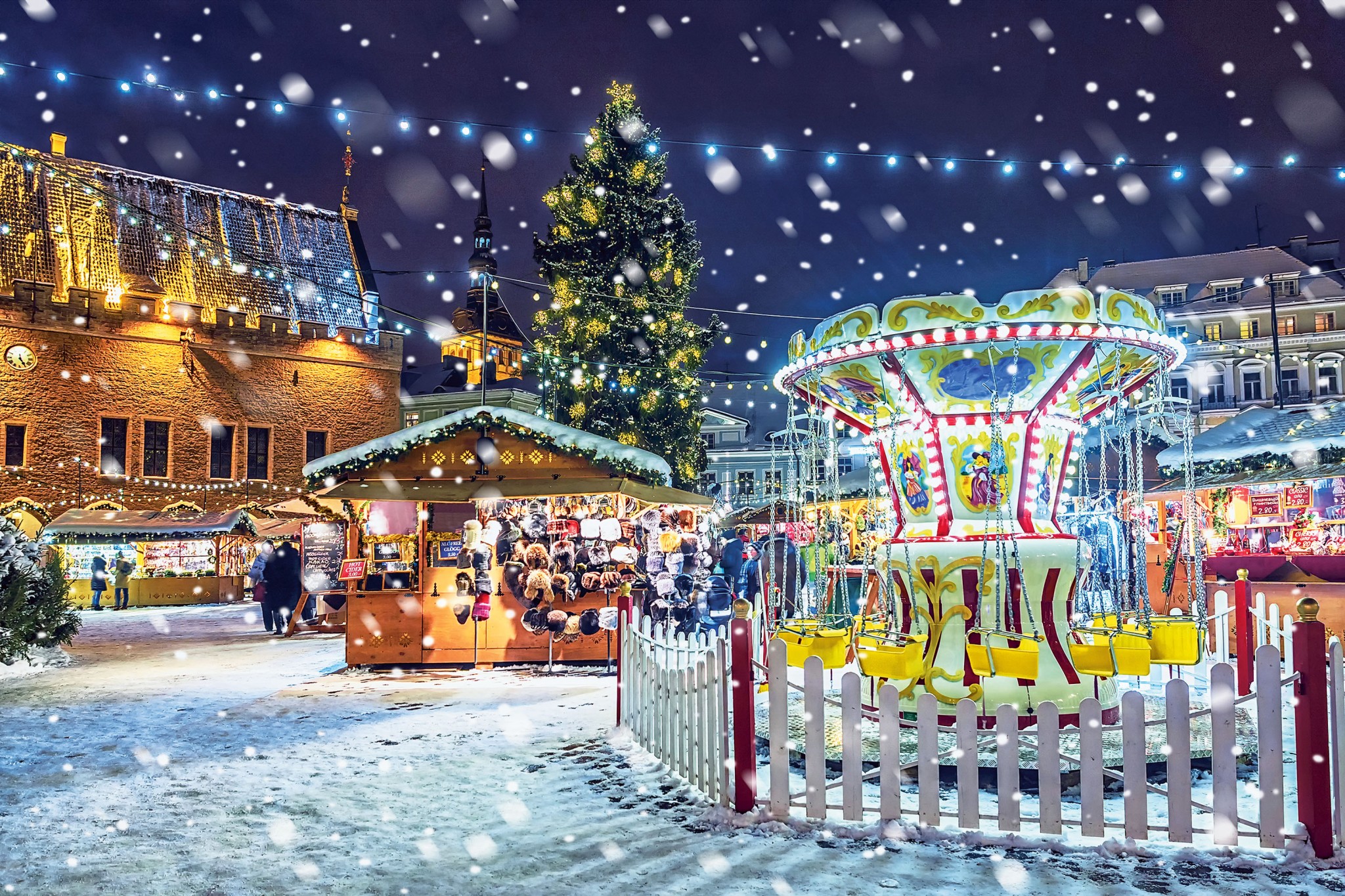 Рождественский рынок на Ратушной площади в прошлом году признали лучшим в Европе. Он не такой большой, как в других городах, зато веселый и благодаря средневековому антуражу кажется абсолютно аутентичным. Крутится расписная карусель, разливают ароматный глёг, угощают имбирным печеньем, продают украшения, толстенные вязаные свитера с оленями и джемы (наш фаворит из морошки). Здесь же до 24 декабря принимает поздравления местный Дед Мороз — Йыулувана.