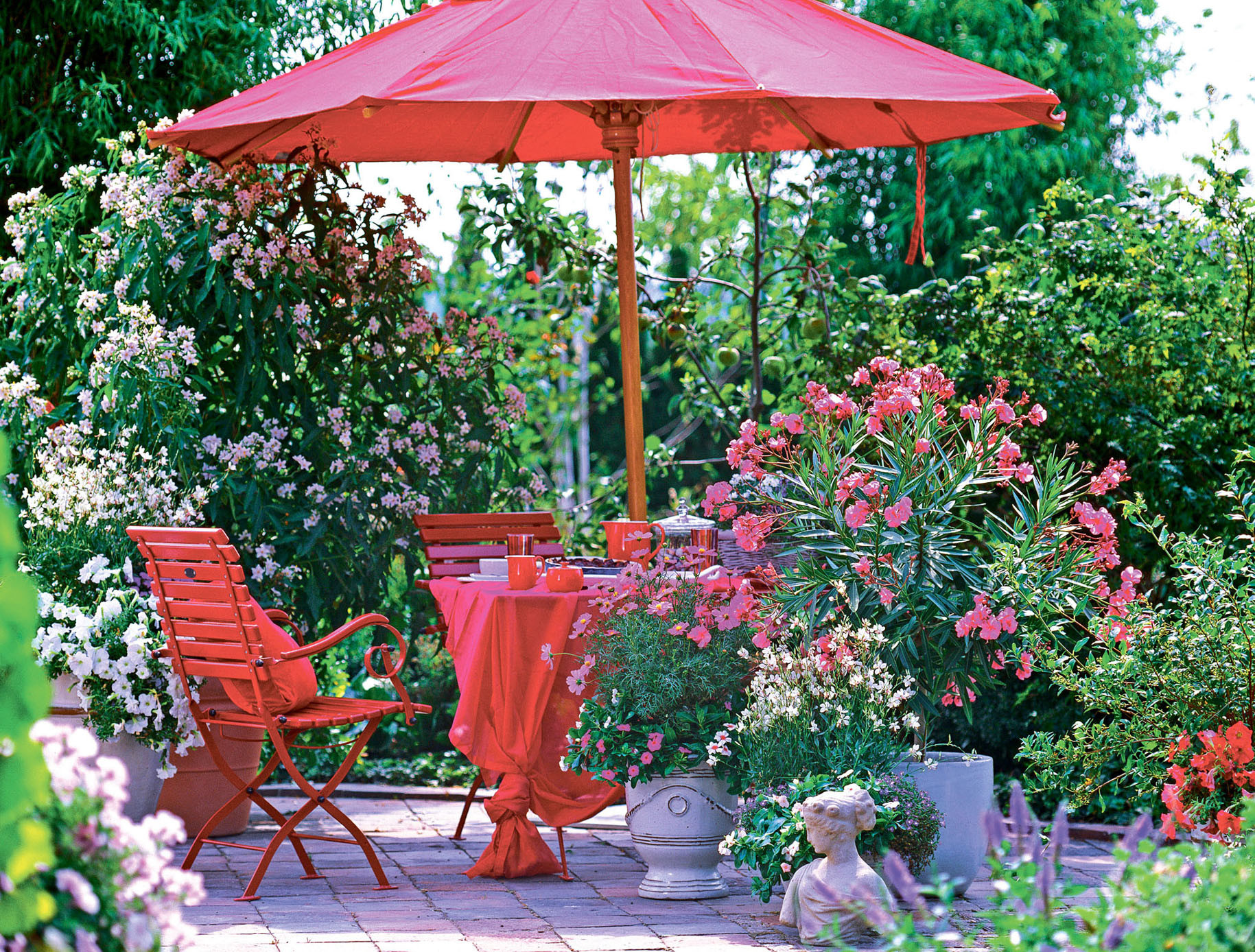 Настоящий цветущий оазис для всех, кто хочет насладиться солнечным летом в полной мере, обеспечат средиземноморские кадочные растения, установленные на террасе в декоративных емкостях или размещенные непосредственно в цветнике прямо в горшках. Олеандр, кассия, клеродендрон, горечавка или цеструм – эти долгоцветущие растения создадут прямо у вашего порога атмосферу Средиземноморья. Наряду с декоративными растениями можно посадить пряные травы – тимьян, розмарин