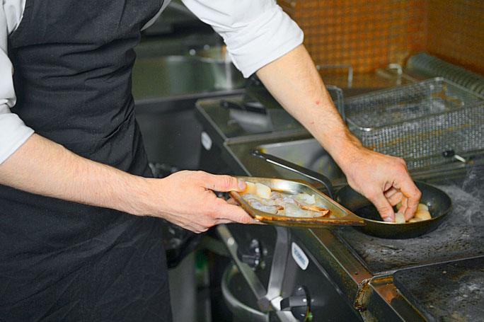 «Я не проверять, а готовить пришла», — сразу обозначила я свою позицию. Чепчик не взяла и грустно подумала, что разрешат, наверное, только наблюдать за процессом. Однако Дима прервал мои размышления, предложив вместе приготовить теплый салат: «С чем сделаем — с курицей или с морепродуктами?» Курицу я «знаю и умею», поэтому без сомнений выбрала второй вариант.