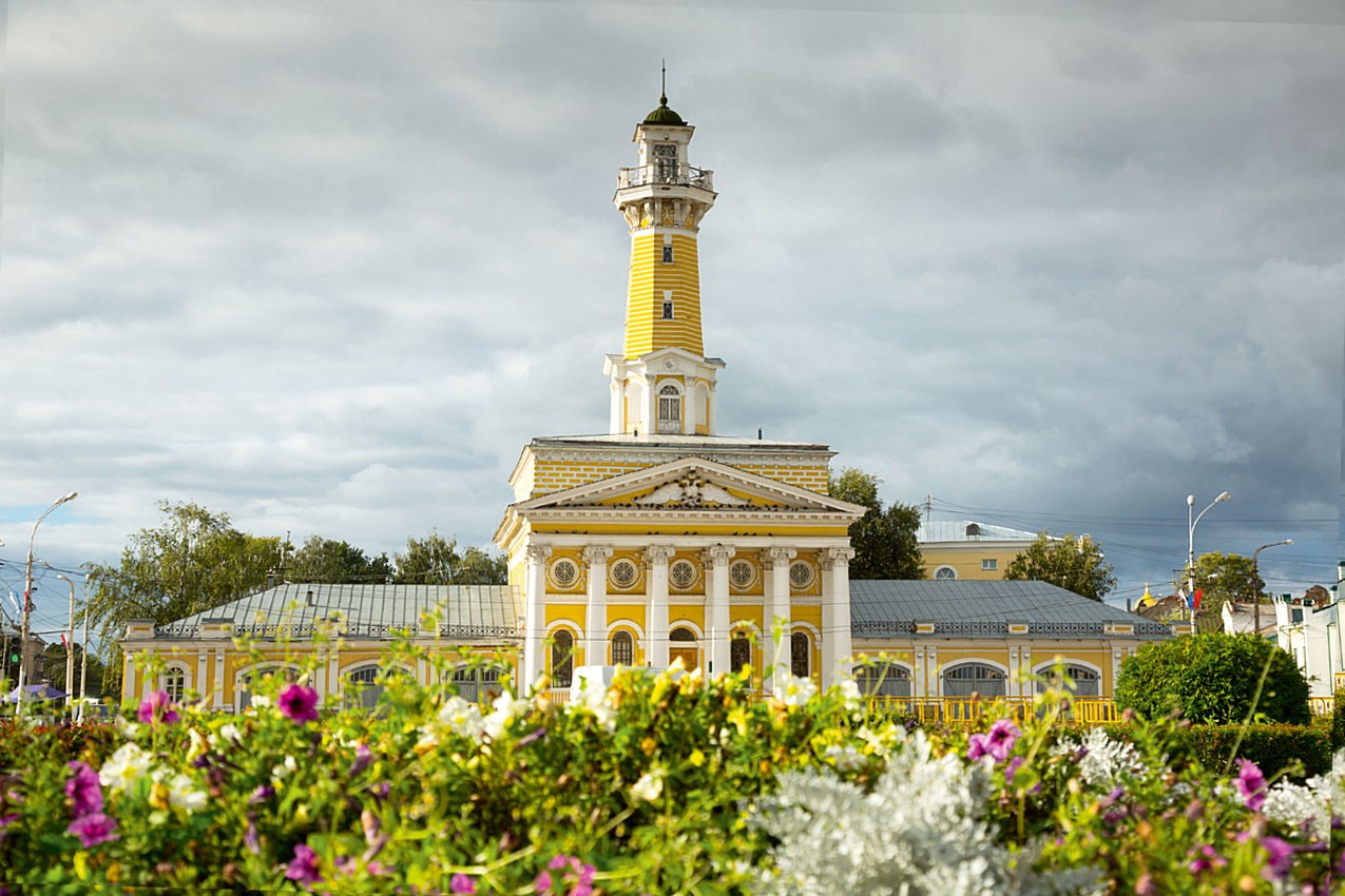 Встречаемся на «Сковородке»… Звучит, согласитесь, загадочно. На самом же деле так по-свойски костромичи называют круглую Сусанинскую площадь. Над ней возвышается высоченная Пожарная каланча. «Такой в Петербурге нет!» — с сожалением произнес Николай I во время визита в Кострому. Внутри здания с колоннами и башенкой больше ста лет размещались пожарные службы, а сейчас работает отдел Костромского музея-заповедника, в котором можно заказать экскурсии.