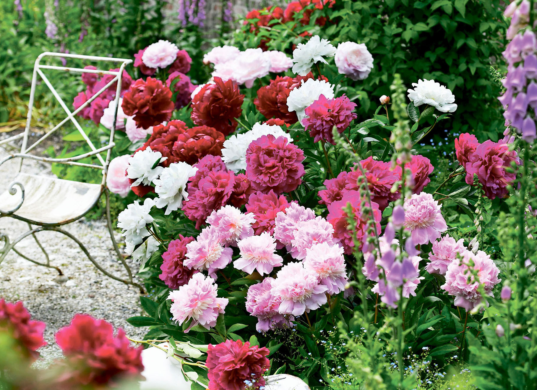 Цветник на хорошо освещенном участке с рыхлой, плодородной почвой, которую регулярно увлажняют в засушливые дни, – оптимальное место обитания для многих красивоцветущих многолетников. Вот несколько классических комбинаций, которые вам гарантированно понравятся: высокорослый флокс метельчатый с нивяником и гипсофилой, дельфиниум с тысячелистником и мелколепестником (Erigeron), пионы с геранью великолепной (Geranium magnificum) или манжеткой. Однажды