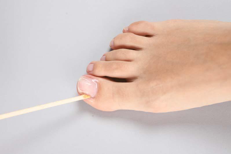 3. Нанесите на кутикулу и околоногтевые валики немного размягчающего геля, оставьте на 20-30 сек., а затем смойте его водой.