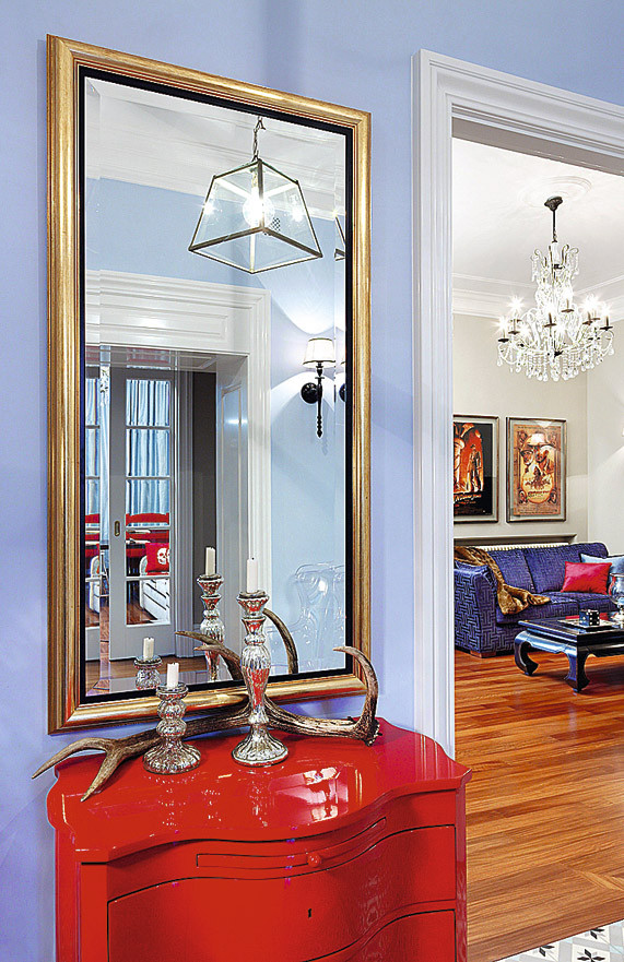 Простой способ визуально расширить тесный коридор – купить и поставить туда шкаф с зеркальными дверцами. Помещение мгновенно «растянется», особенно если зеркала сделаны во весь «рост». Не менее действенным вариантом является глянцевая мебель с отражающим эффектом. Если любите необычные решения, переоборудуйте торцевую стенку, которой завершается проход, в зеркальную поверхность. Только не перегните палку, иначе будете «входить в стену», что может с непривычки раздражать.