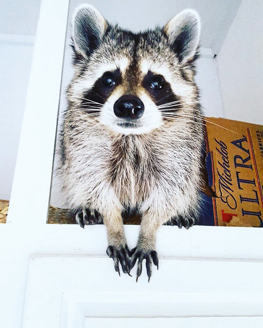 По доброй воле завести енота может решиться лишь человек со стальными нервами. Но у Рози, жительницы Багамских островов, не было выбора. Несколько лет назад зверек буквально свалился на на нее с неба. Крошка-енотиха упала с дерева на заднем дворе дома Рози. Приземление было неудачным — Пампкин (в переводе — «тыковка») сломала лапку, выглядела очень несчастной, и женщина решила оставить ее у себя. Малышка быстро нашла общий язык со всеми домочадцами. И особенно подружилась