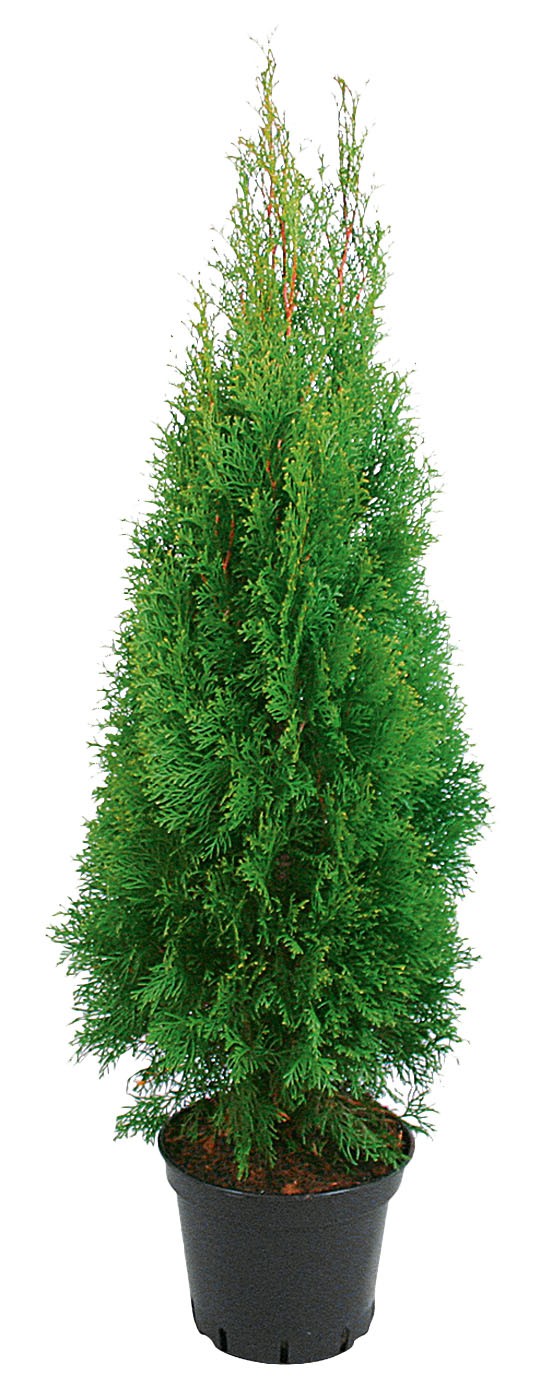 Переходим к озеленению участка. Тем, кто не планирует провести лето, копаясь в земле, я рекомендую выбирать растения, которые быстро и легко приживаются и не требуют особого ухода. В качестве вечнозеленого «каркаса» будущего сада обычно используют хвойные. Например, туя: ей не нужно уделять много внимания, да и зиму она переживает без проблем. Хвоя на правильных саженцах должна быть однородного нежно-зеленого цвета. Если заметили желтые иголки, растение лучше не покупать.