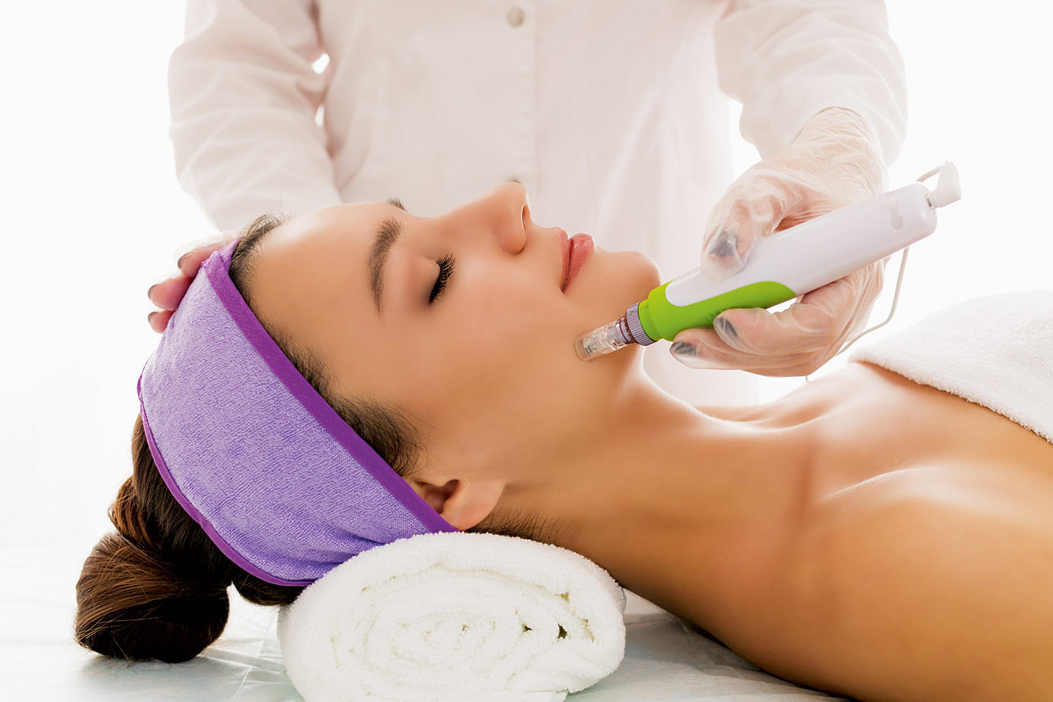 Она представляет собой процедуру вакуумного массажа и мягкого отшелушивания поверхностных ороговевших клеток кожи. Одновременно наносятся специальные сыворотки с качественными составами.