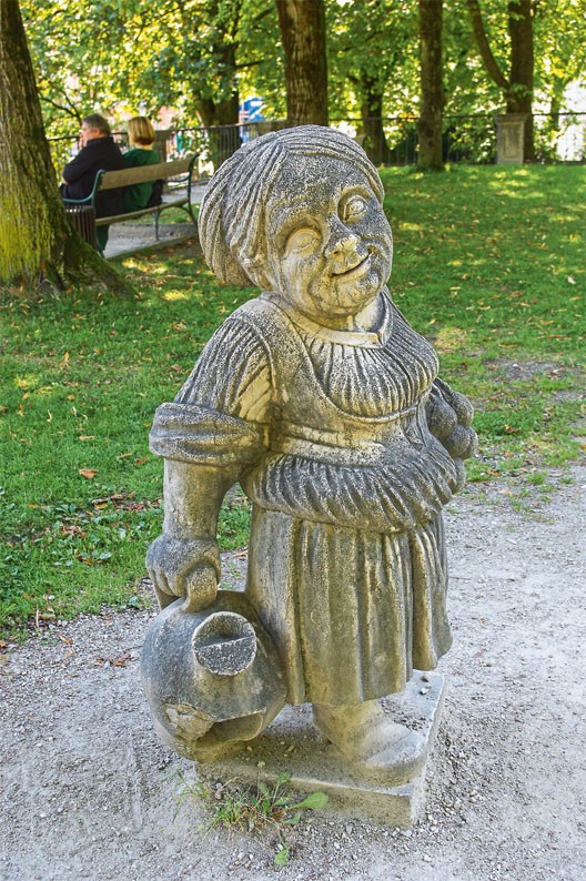 Во-первых, я люблю гулять. Просто бродить — медленно, обстоятельно и долго. К счастью, погода в Зальцбурге располагала, как, собственно, и ландшафт города. Неспешным шагом я добрела до парка Мирабель. Зеленые лужайки, цветущие кусты, скульптуры и сад гномов. Каждая фигурка там олицетворяет наши пороки и добродетели, пояснений нет, приходится самой догадываться, кто тут отвечает за жадность, кто за отвагу. Такой забавный и довольно увлекательный ребус.
