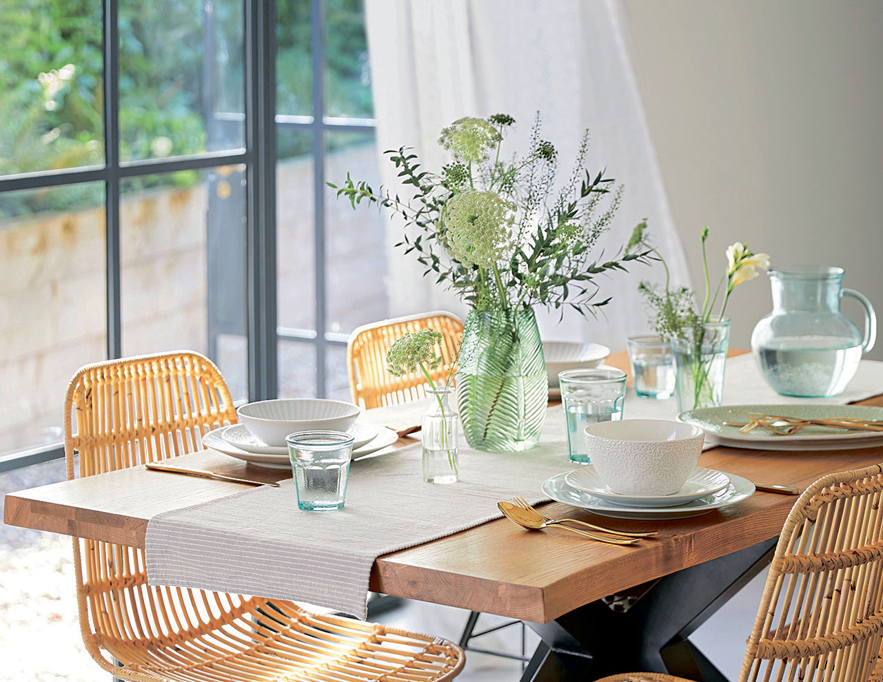 Поставьте на стол букет свежих цветов, чтобы завершить композицию.
