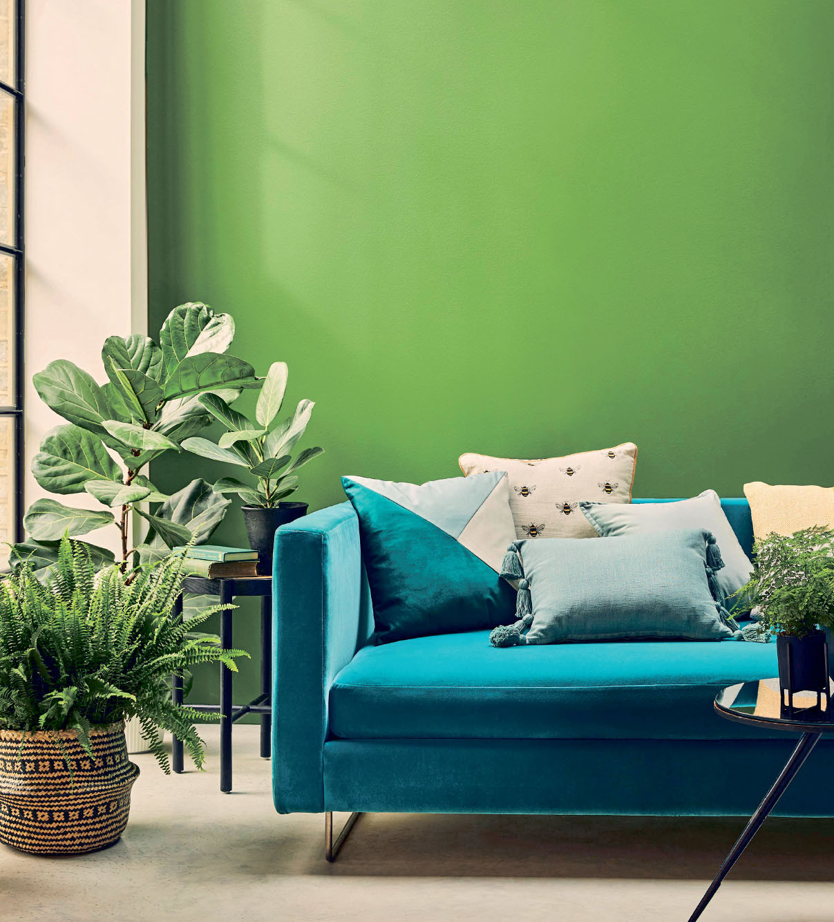 Зеленый цвет в интерьере уже несколько лет на пике популярности, и не зря. Он освежает пространство, отлично сочетается с базовыми цветами, а также с желтым и бирюзовым. Зеленые горшки с домашними растениями тоже не будут лишними, ведь нам так не хватает воздуха!