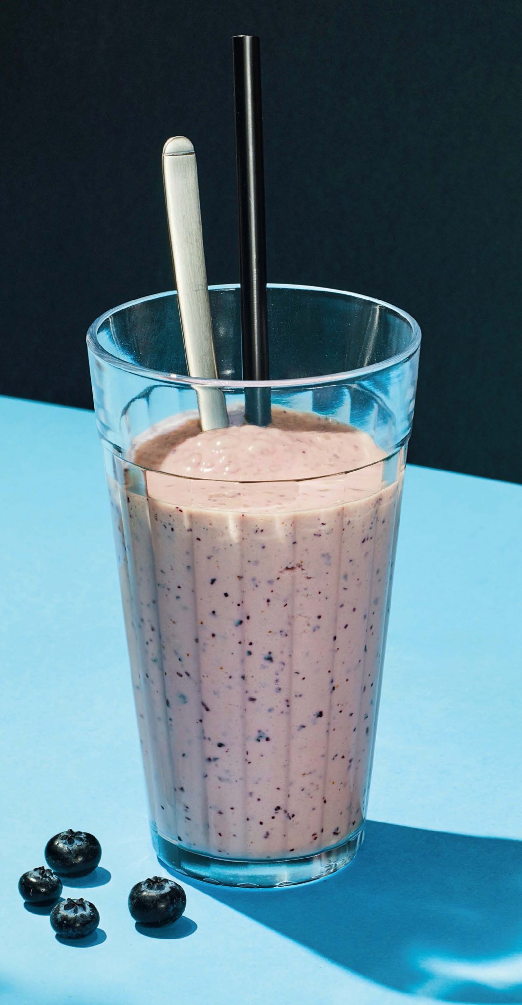 - Смузи: смешать 100 г йогурта, 2 ст. л. творога 5%, 100 г голубики или любой другой любимой размо - роженной ягоды, полученную смесь взбить блендером и получить напиток.