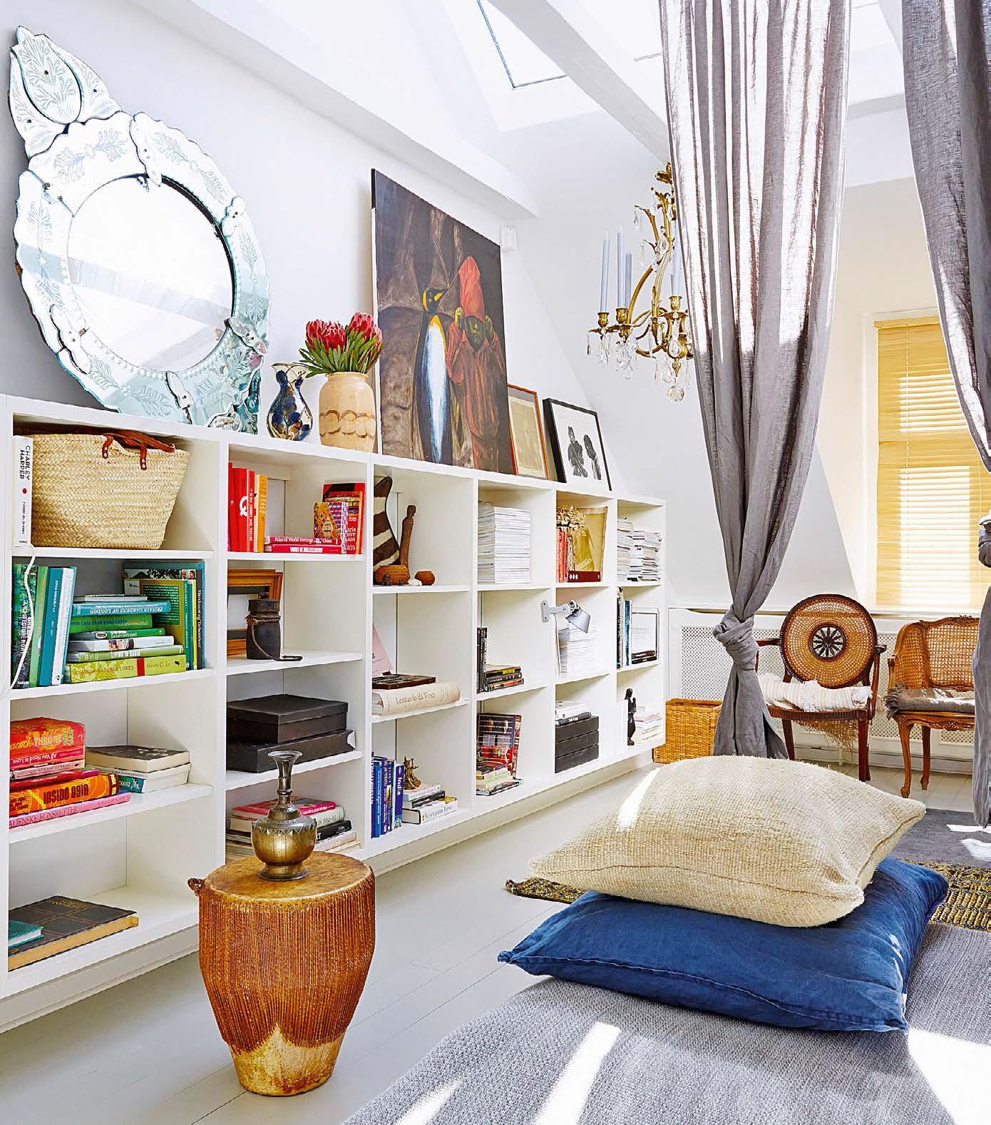 Искусство компоновки. Чтобы содержимое полок выглядело аккуратно, группируйте книги и предметы коллекций по одному и тому же принципу на всех полках.
