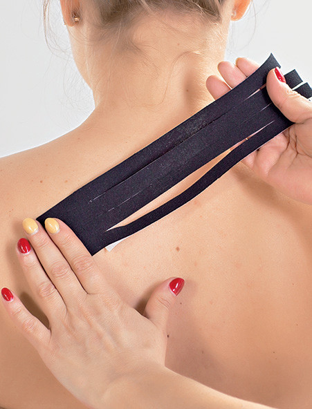 Техника тейпирования успешно борется с отеками, корректирует осанку и отлично помогает снять напряжение с шеи и плеч тем, кто много работает за компьютером.