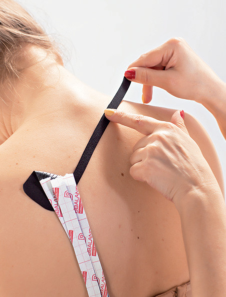 1. Отмеряем отрезок тейпа от края лопатки до волосистой части головы по диагонали.
