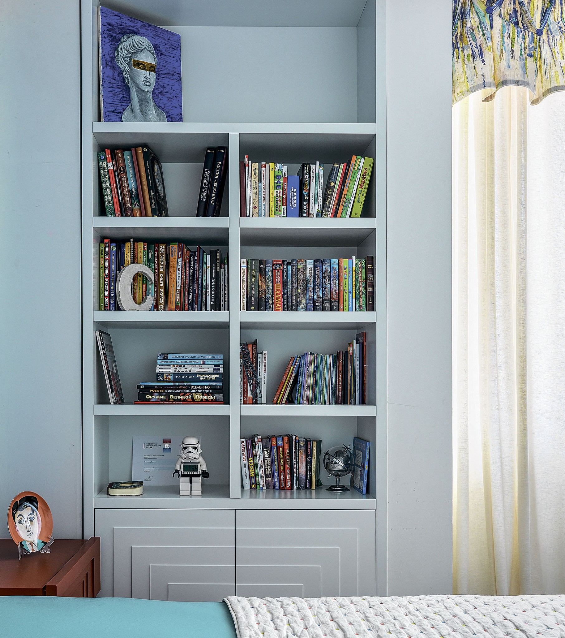 Школьным принадлежностям понадобится свое отдельное место хранения. Если раньше детские книжки, альбомы и игрушки можно было хранить вместе, теперь ребенок должен четко осознавать, что есть время для уроков и есть время для игры. И лучше не смешивать предметы из «одного лагеря» с «другим». Игрушки стоит убирать в закрытые ящики, чтобы не отвлекали от занятий. Чем проще и компактнее организована система хранения школьных вещей, тем легче поддерживать в ней порядок. Обратите внимание на стеллажи ИКЕА, у которых часть полок может иметь открытую конструкцию, а часть – фасады или ящики. В будущем ящики легко убрать, превратив стеллаж в обычные полки для книг.