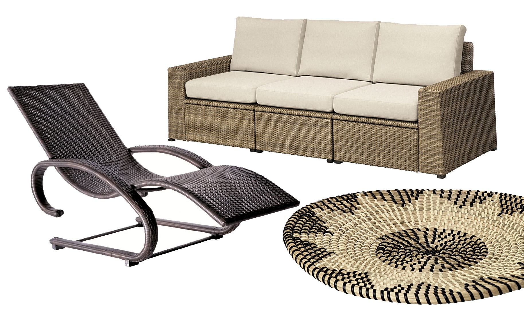 Мебель из ротанга (или имитация под ротанг), циновки и коврики – классика дачной жизни.