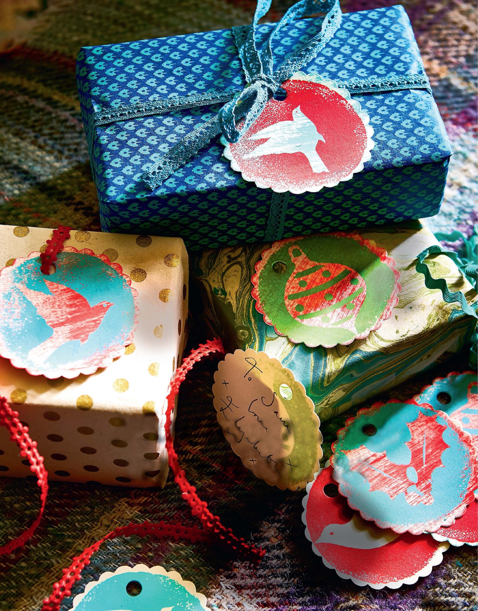 7. Затем в подготовленных цветных заготовках дыроколом сделайте аккуратные дырочки. Проденьте в них ленты или шпагат и используйте для подписи подарков или для гирлянды, которую можно повесить на стене или в дверном проеме.