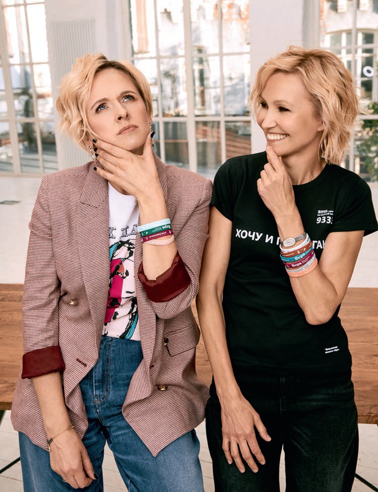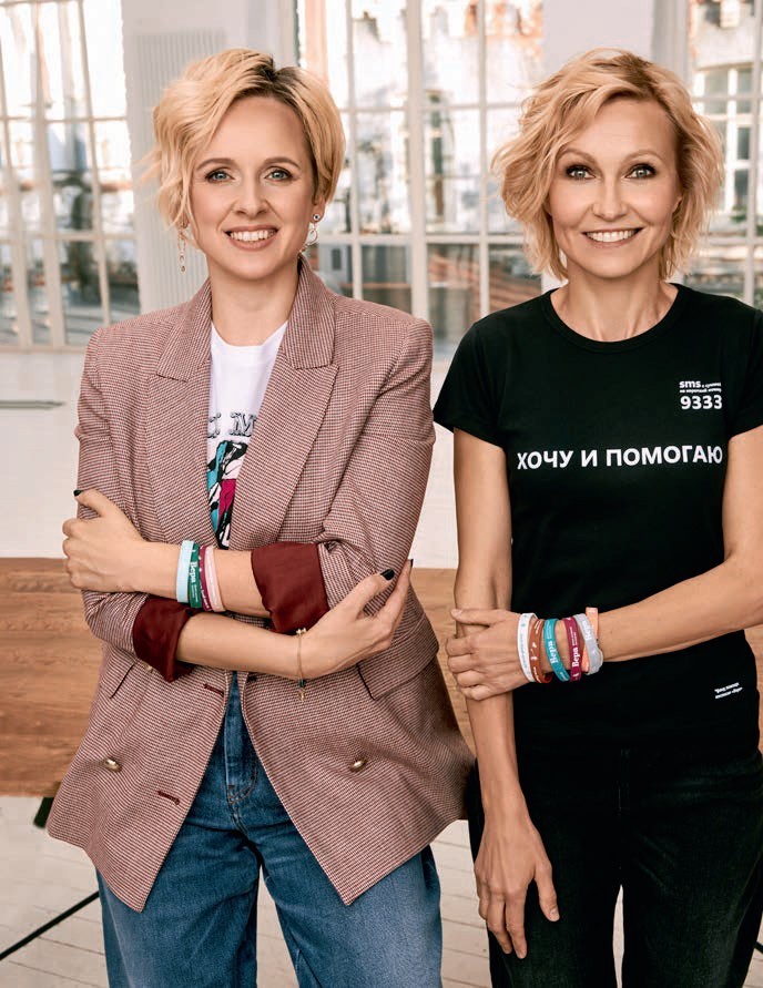 На съемку Ингеборга приехала с футболкой и браслетами фонда помощи хосписам «Вера», где она работает уже тринадцать лет и на мероприятии которого я с ней однажды познакомилась. Фонды часто ищут для себя звездное «лицо» – так легче рассказывать публике о том, чем ты занимаешься, и доверие к звезде отсветом ложится и на деятельность организации. Парадоксальный, на первый взгляд, выбор яркой, улыбчивой,