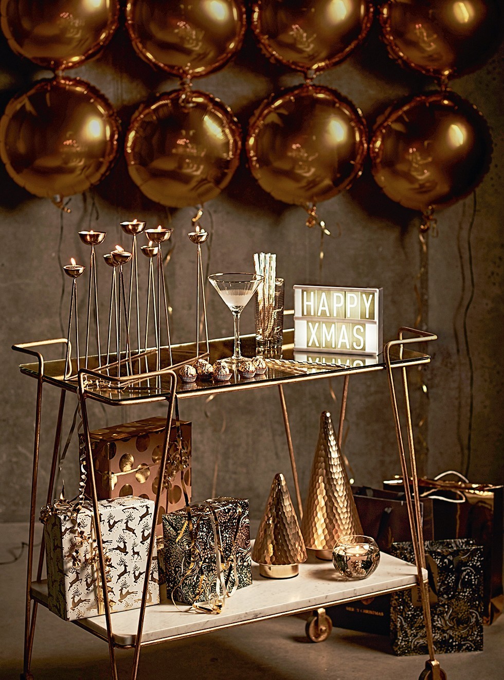 Столик на колесах или приставную консоль можно использовать для приготовленных подарков, которые ждут своего часа.