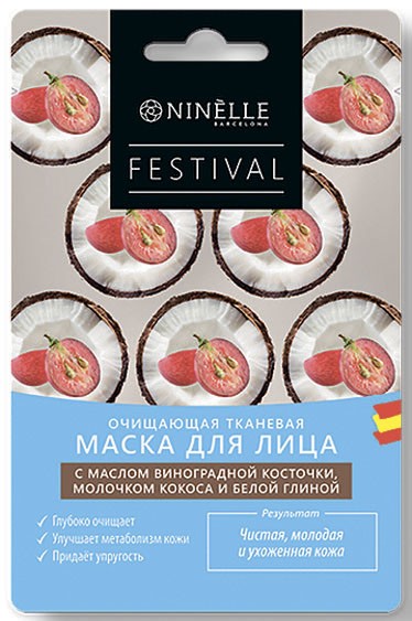 Если у вас мало времени, выбирайте удобные тканевые маски – такая маска с маслом виноградной косточки и молочком кокоса отлично очищает и придает упругость.
