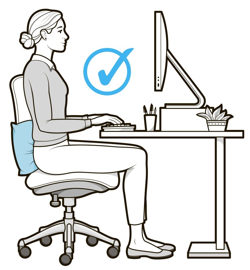 Смотрите вперед. Установите монитор на уровне глаз или чуть выше. Размер шрифта на экране должен быть такого размера, чтобы вам не приходилось наклоняться.