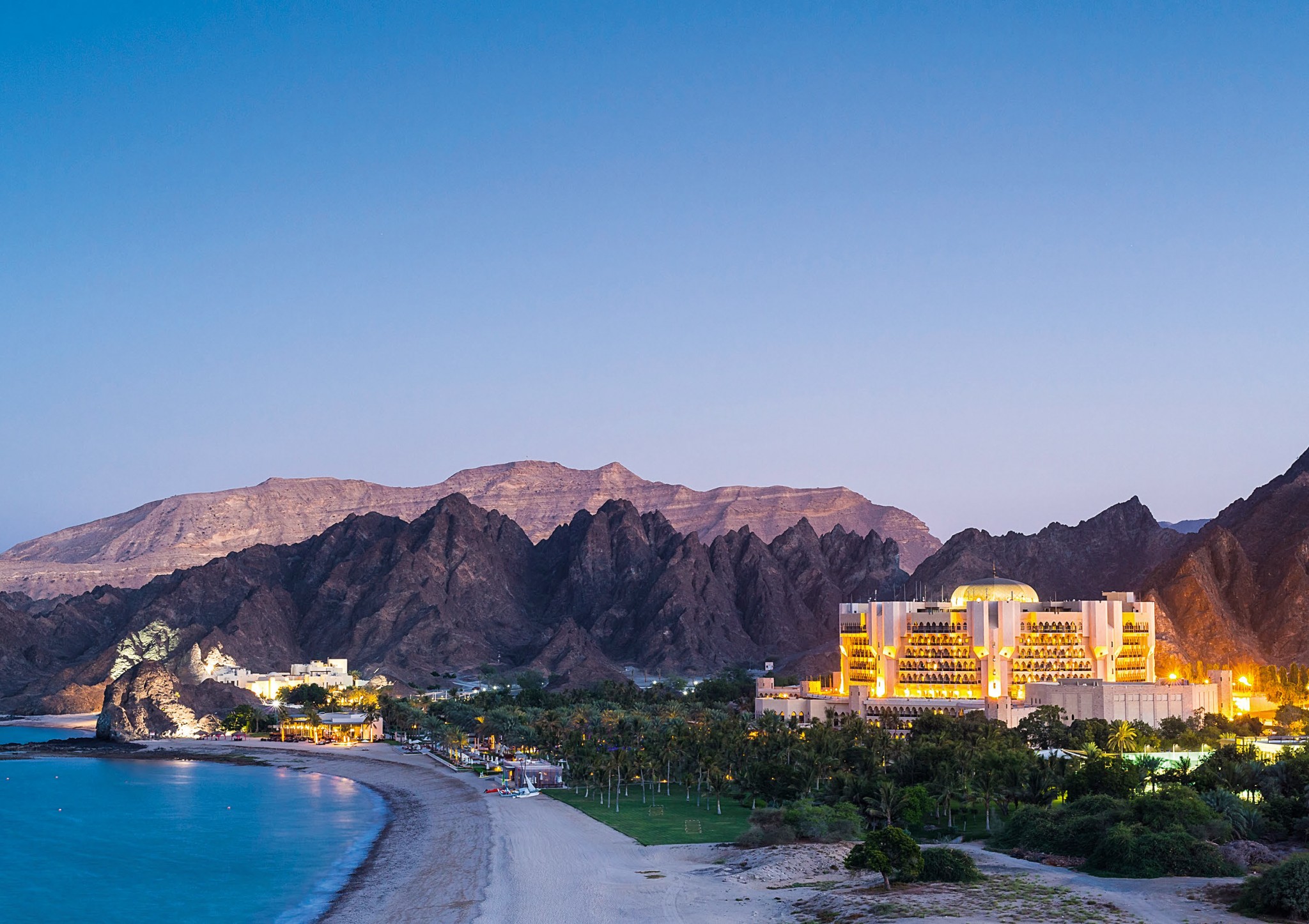 Фантастические горы окружают отель Al Bustan Palace, A Ritz-Carlton как крепость