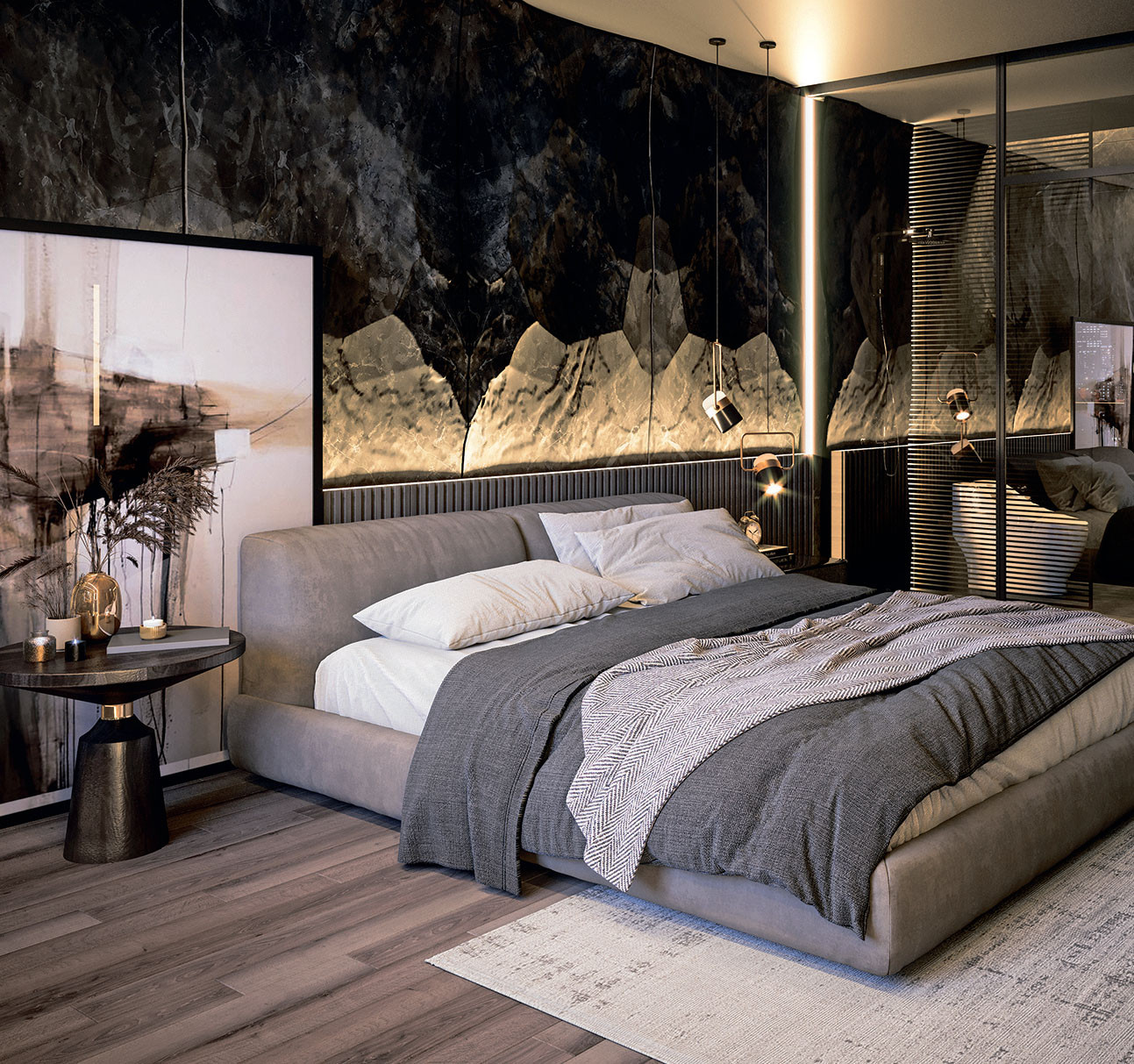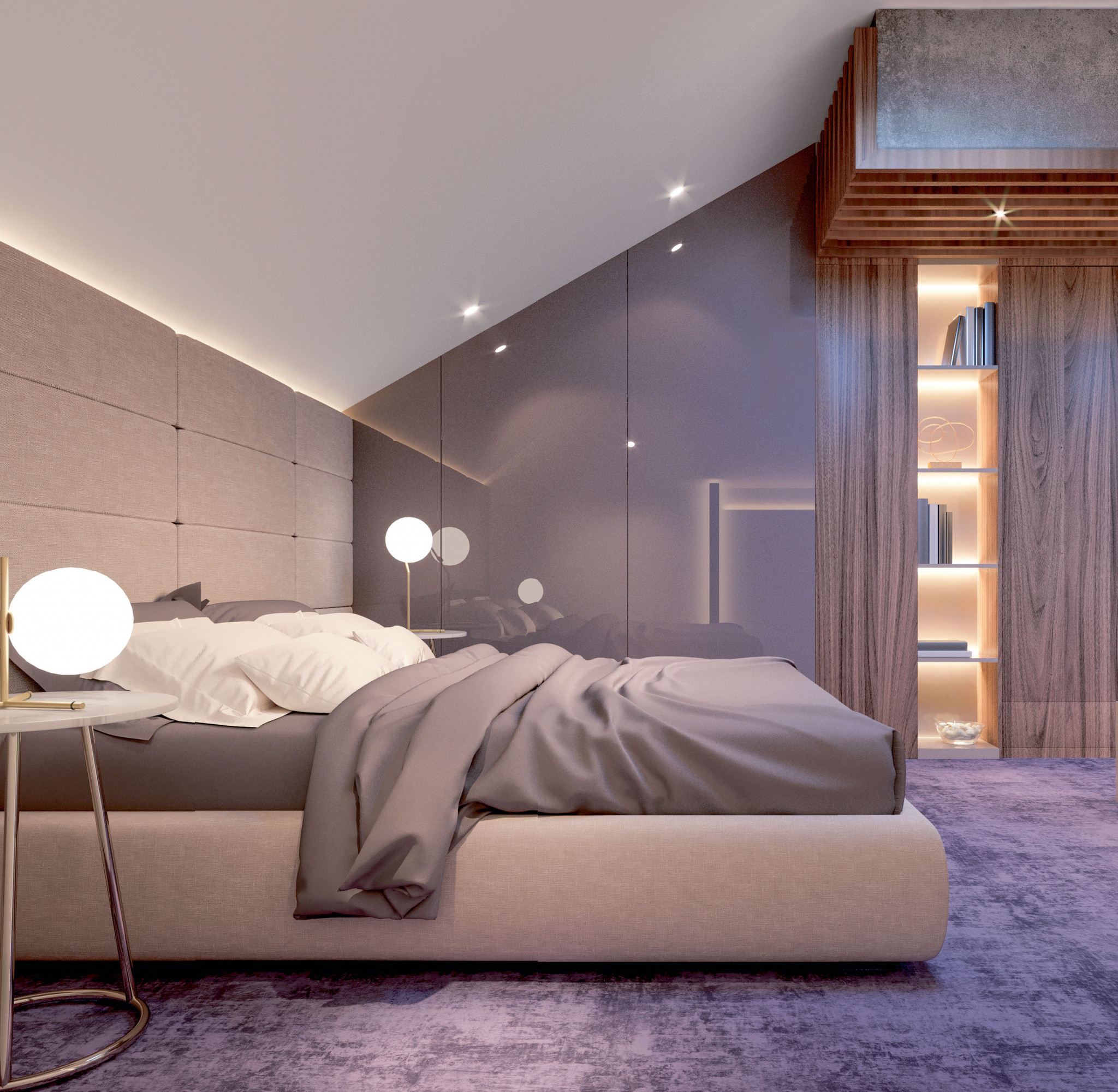 Это особое пространство, где нам приятно расслабиться, побыть наедине с собой. Если высота потолков не позволяет повесить люстру, можно отказаться от нее вовсе. Отдайте предпочтение локальному освещению в прикроватной части, поставьте торшер и сделайте подсветку в зоне гардероба. Освещение в спальне не стоит делать слишком ярким, важно получить возможность менять его интенсивность.