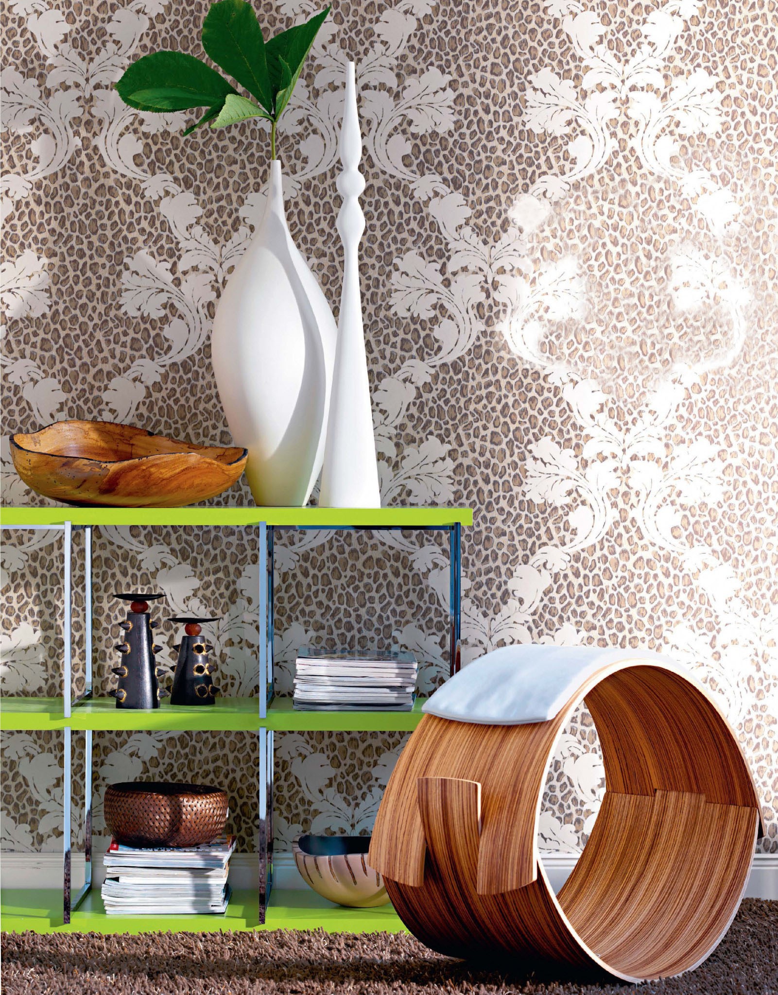 Чем интереснее рисунок обоев, тем больше вероятность, что он выйдет за рамки отведенной ему второстепенной роли, а станет лейтмотивом интерьера в целом. Растительным мотивам необходим объем, в маленьком помещении им «тесно».