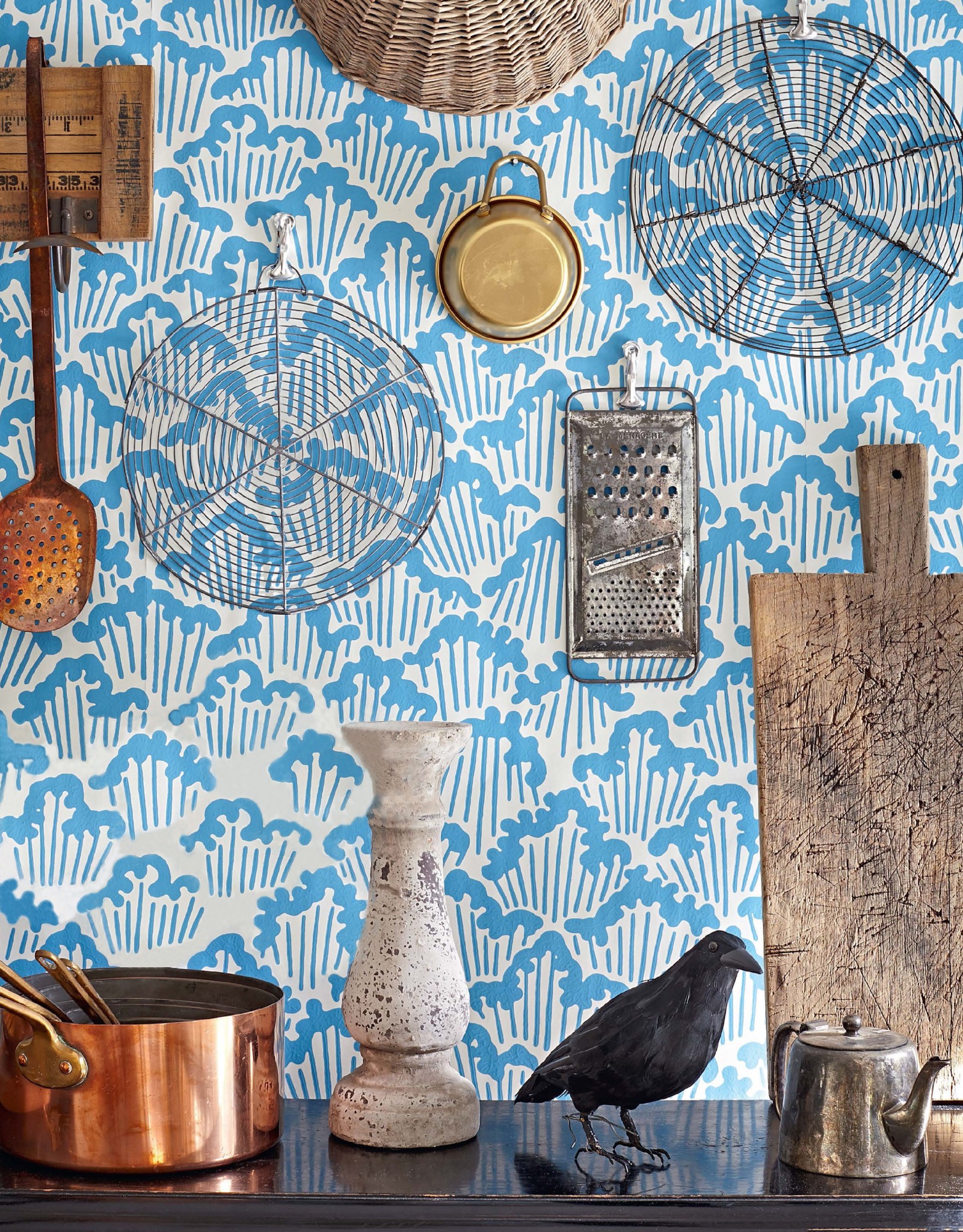 Воссоздать атмосферу классического голландского интерьера помогут обои, напоминающие старинные изразцы. Они хороши в сочетании с предметами из натуральных материалов и состаренными фактурами.
