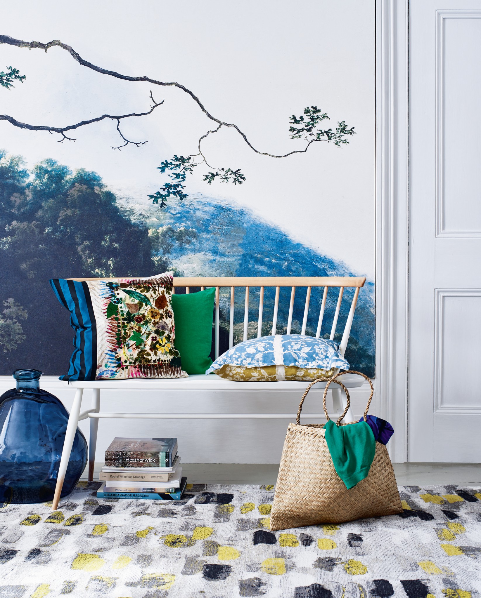 Простые, почти условные растительные набивные принты, геометрика, природные цвета, оттенки голубого, серого, перламутрового, цвета морской волны... Светлые тона призваны расширить пространство и добавить света в интерьер, подчеркнуть красоту объектов мебели.