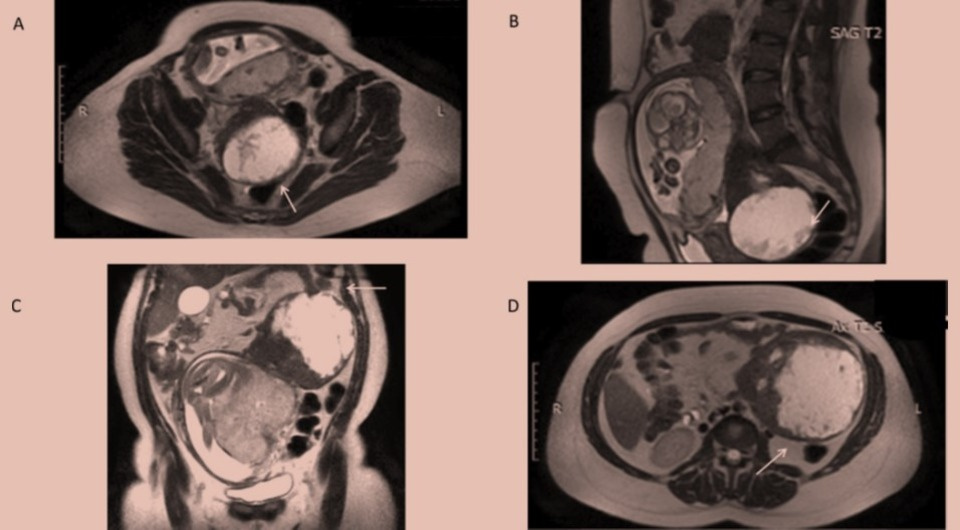 Диагностика и лечение объемных образований в брюшной полости значительно ограничены во время беременности. Для визуализации этой области доступны только ультразвуковые исследования и магнитно-резонансная томография, при этом анализы крови на опухолевые маркеры могут быть неинформативны. Хирургическое лечение таких опухолей представляет большой риск как для матери, так и для плода, однако и выжидательная тактика может привести к патологиям беременности и родов.