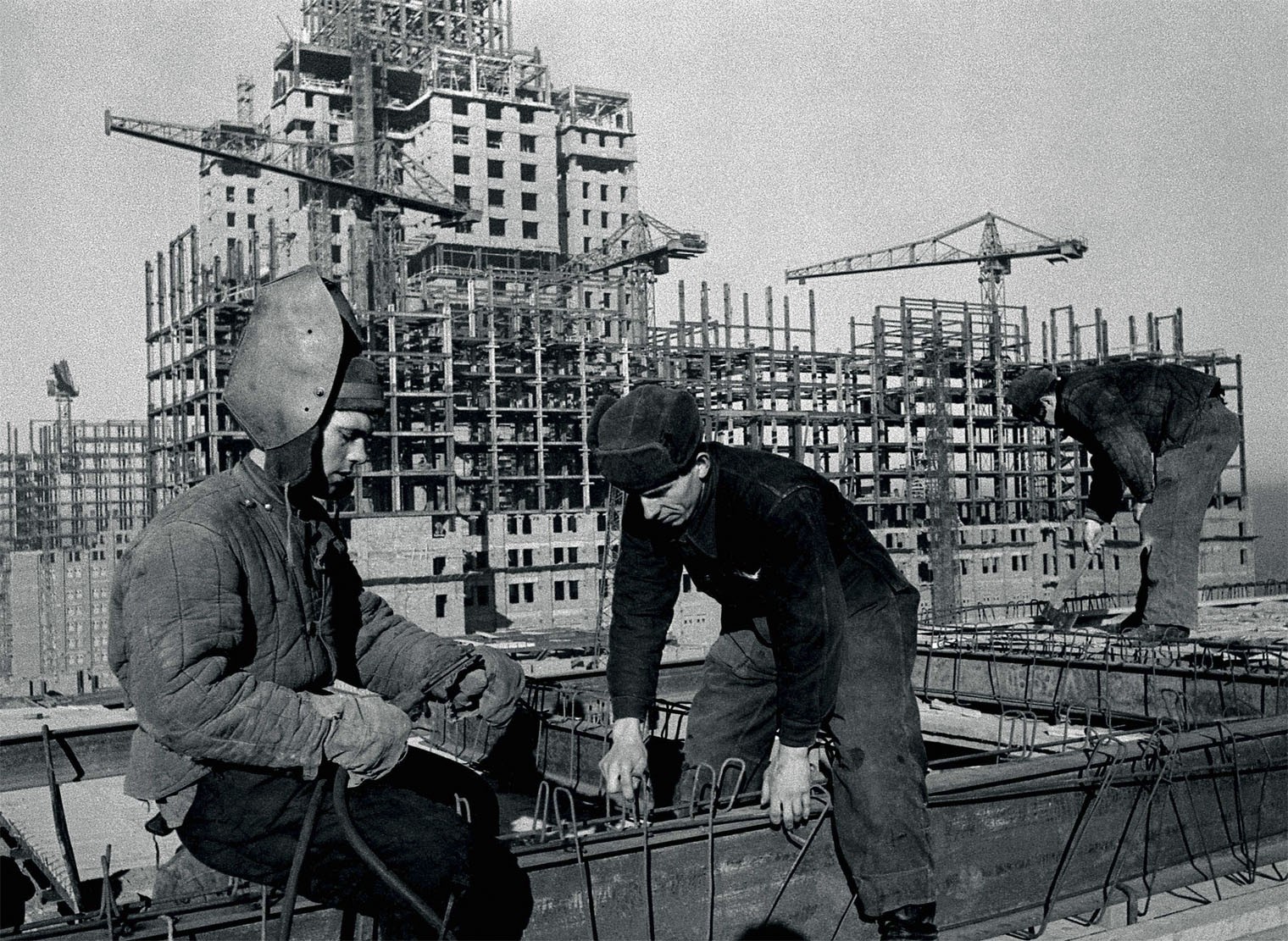 В разгар строек, когда ударными темпами нужно было восстановиться после войны и возвести хотя бы временное жилье, на первый план выходит фигура строителя – мифологического широкоплечего атланта. Он не просто держит на своих плечах ГЭС или сталинскую высотку, но строит коммунизм. О том, что это дается ценой человеческих жизней, в прессе не сообщается. Хрущевки романтизируют – Шостакович пишет оперетту в честь быстро-возводимого жилья «Москва, Черемушки». К концу 1950-х у молодых людей возрастет интерес к учености: начнут мечтать о карьере врача или биолога – в эпоху научно-технических прорывов-биогенетику перестанут считать лженаукой.
