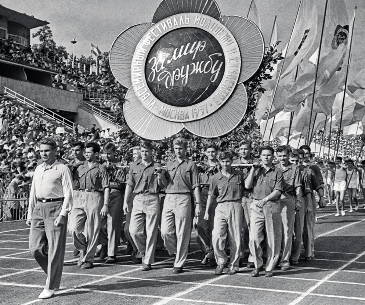 Время акклиматизации. Только в 1955-м СССР официально выйдет из состояния войны с Германией. На XX съезде КПСС говорят о мирном сосуществовании стран соцлагеря, но после закрытого доклада Хрущева о культе личности Сталина отношения портятся с коммунистическим Китаем. Обостряется противостояние с Америкой, которую важно догнать и перегнать: Штаты первыми испытывают термоядерную бомбу, Советы – запускают искусственный спутник Земли. Выходит роман Сэлинджера «Над пропастью во ржи», критикующий американскую действительность, и роман Пастернака «Доктор Живаго». 11 «Оскаров» получает фильм «Бен-Гур» Уайлера, «Золотую пальмовую ветвь» – «Летят журавли» Калатозова.