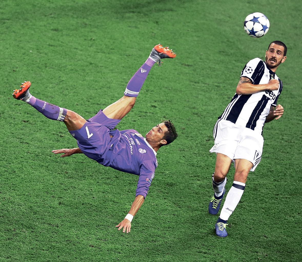 3 апреля 2018 года, туринский стадион «Альянц». Финал Лиги чемпионов – «Реал Мадрид» играет против «Ювентуса». На 63-й минуте Криштиану Роналду принимает пас и бьет – стоя спиной к воротам, через голову. Вратарь не успевает понять, что произошло. Это второй гол, забитый Криштиану за матч. Трибуны взрываются – и фанаты «Реала», и болельщики «Ювентуса», которым только что забили, аплодируют Роналду стоя. «Реал» выигрывает со счетом 3:0.